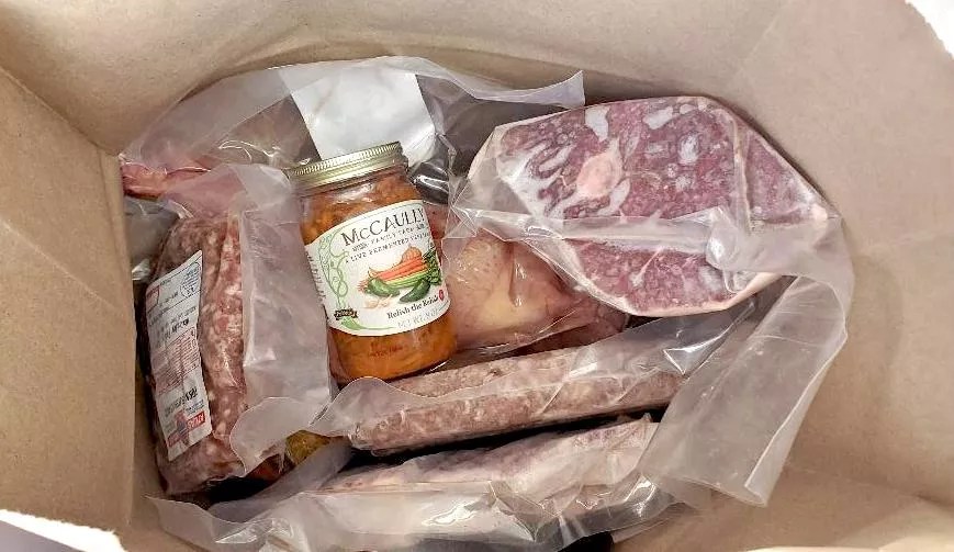 A small delivery of meat from Locavore Delivery.