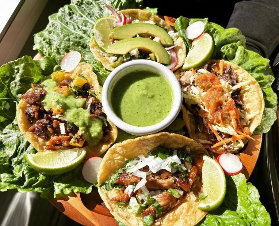 The offerings span borders, with dishes like Salvadoran pupusas and Ecuadorian llapingachos, which Piec calls “cheesy potato cakes” that he learned to make as a kid. The al pastor tacos are cooked on a spit, while skirt steak tortas come with chimichurri, inspired by a trip Piec and his wife took to Argentina.