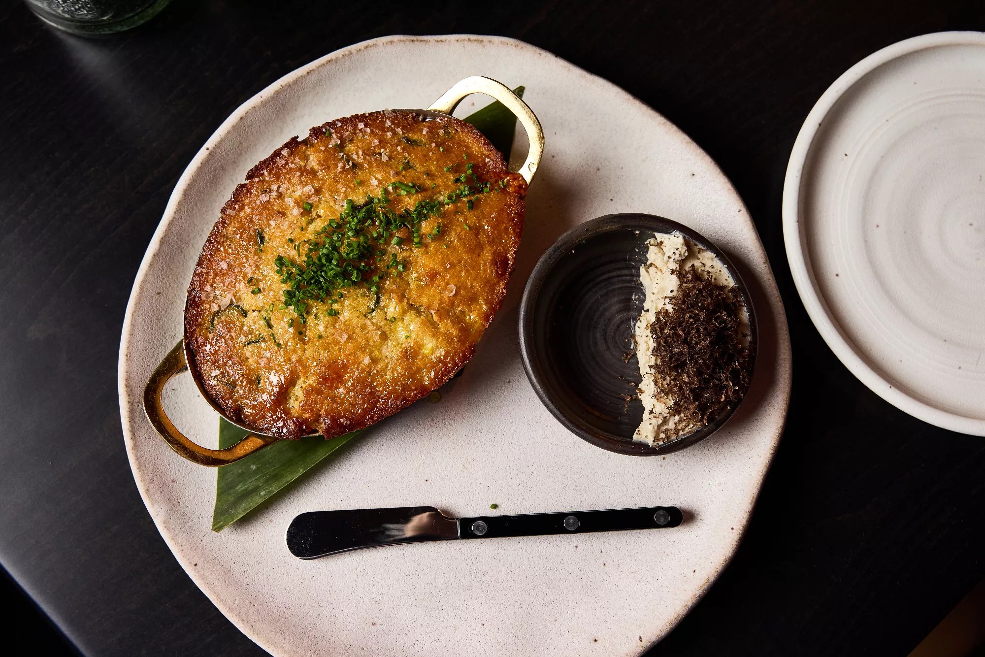But if there’s one dish that Curiel believes will become Alteño’s signature, it’s the Pan De Elote, a jalapeno and Tillamook cheddar cornbread with a soft fluffy texture that eats almost like a spoon bread, served with huitlacoche butter topped with black truffles.