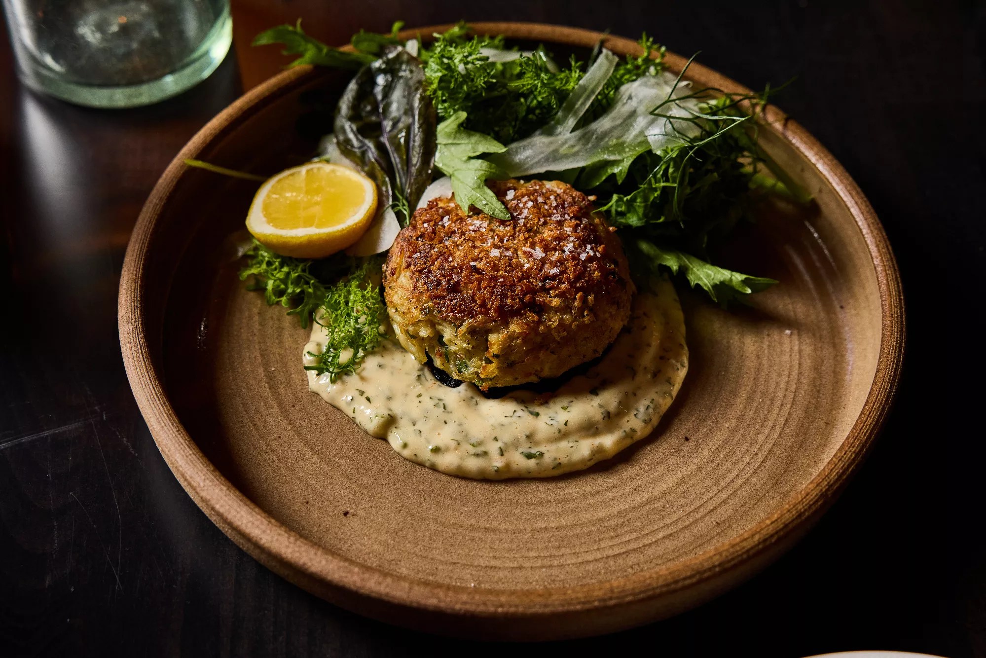 The version of the dish on the menu at Alteño is a crab cake-like patty made with blue crab paired with portobello over a hoja santa remoulade, best enjoyed with a squeeze of fresh lemon.