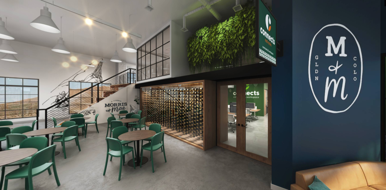 The new Connects Workspace outpost and its adjoining food hall, Morris & Mae, also connect to Aurum, a co-living apartment complex with 168 units that tenants began moving into in June. With a lack of food options in the immediate vicinity, Thoemke, who also owns Cafe 13 in Golden, decided that a food hall would fill a need for residents at this new development as well as hotel visitors and anyone traveling along I-70, from skiers to Red Rocks concert-goers.