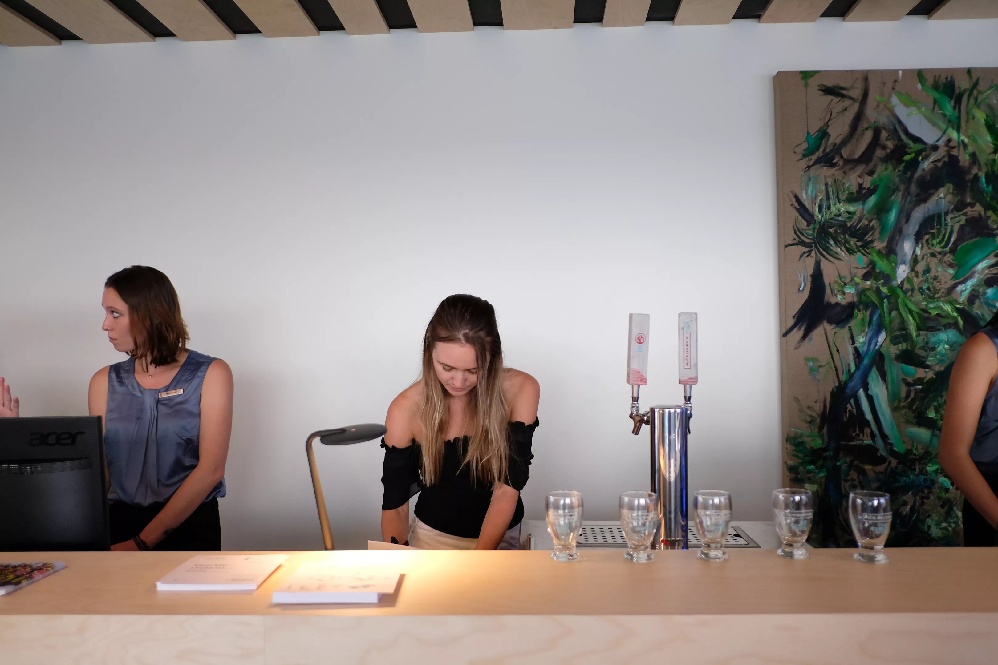 Another perk for hotel guests: There are two taps of New Belgium beer at the check-in stand, so they can get a glass as they fill out their paperwork and take it upstairs to their room.