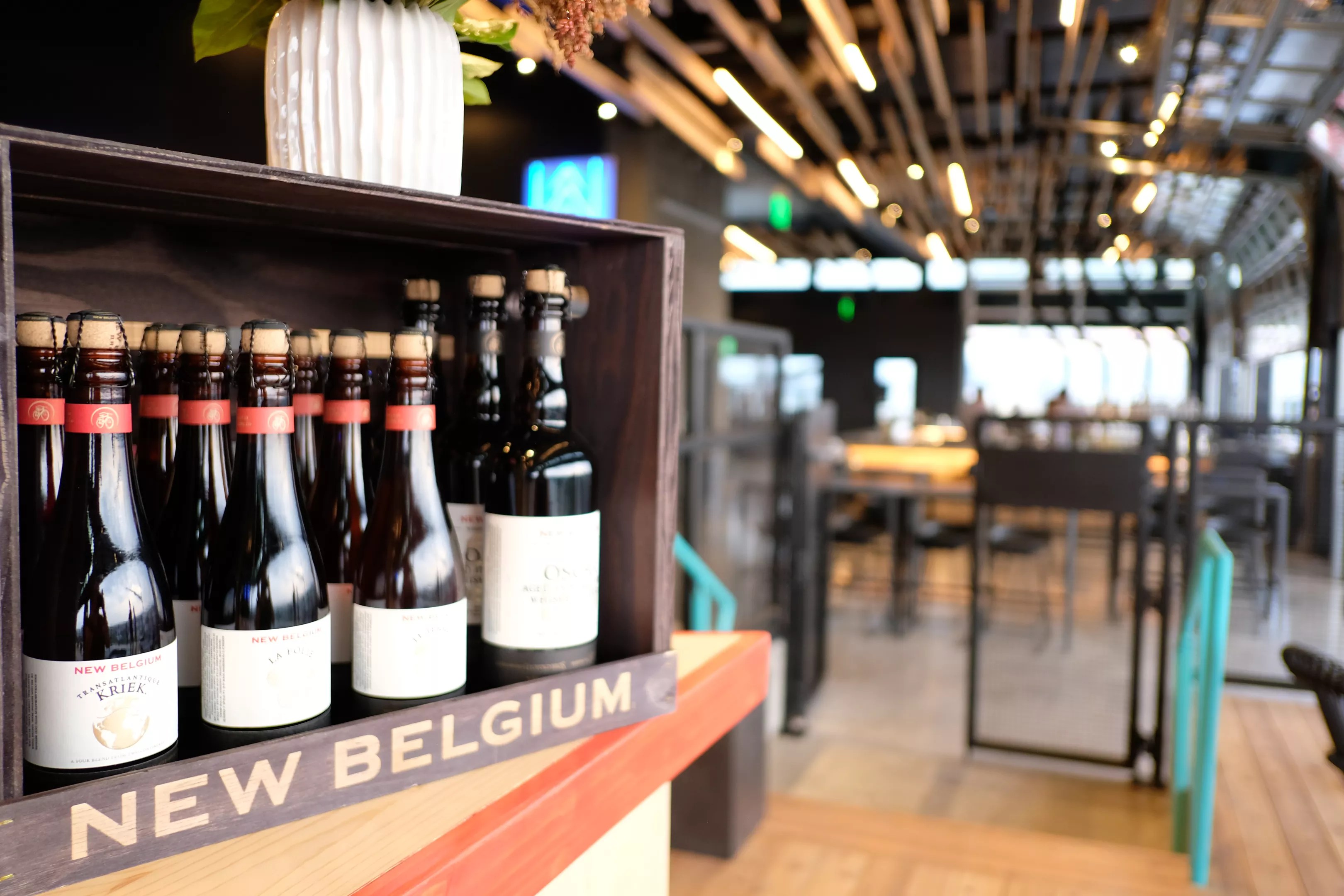 New Belgium’s beers are aged in Leopold Bros. barrels.