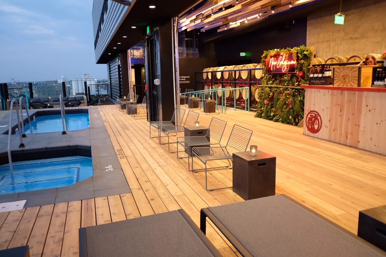 It’s up here where New Belgium Brewing, Colorado’s largest and one of its oldest craft breweries, has teamed up with the developers of the Source Hotel to create The Woods, a restaurant that has been draped inside a barrel cellar and decorated with a dunk pool and intoxicating, nearly 360-degree views of the city.