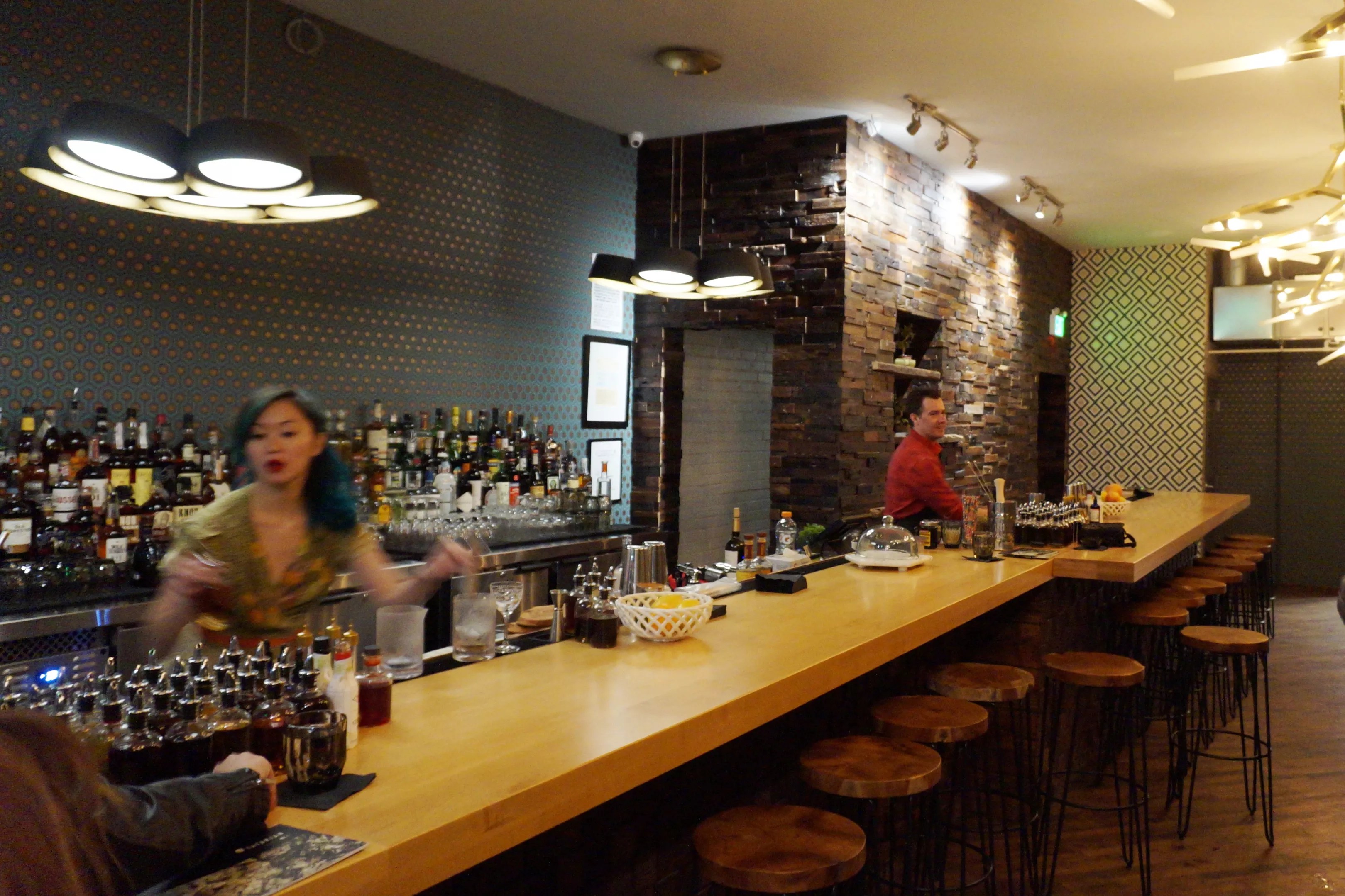 Gleaming bottles line the bar at Tatarian.