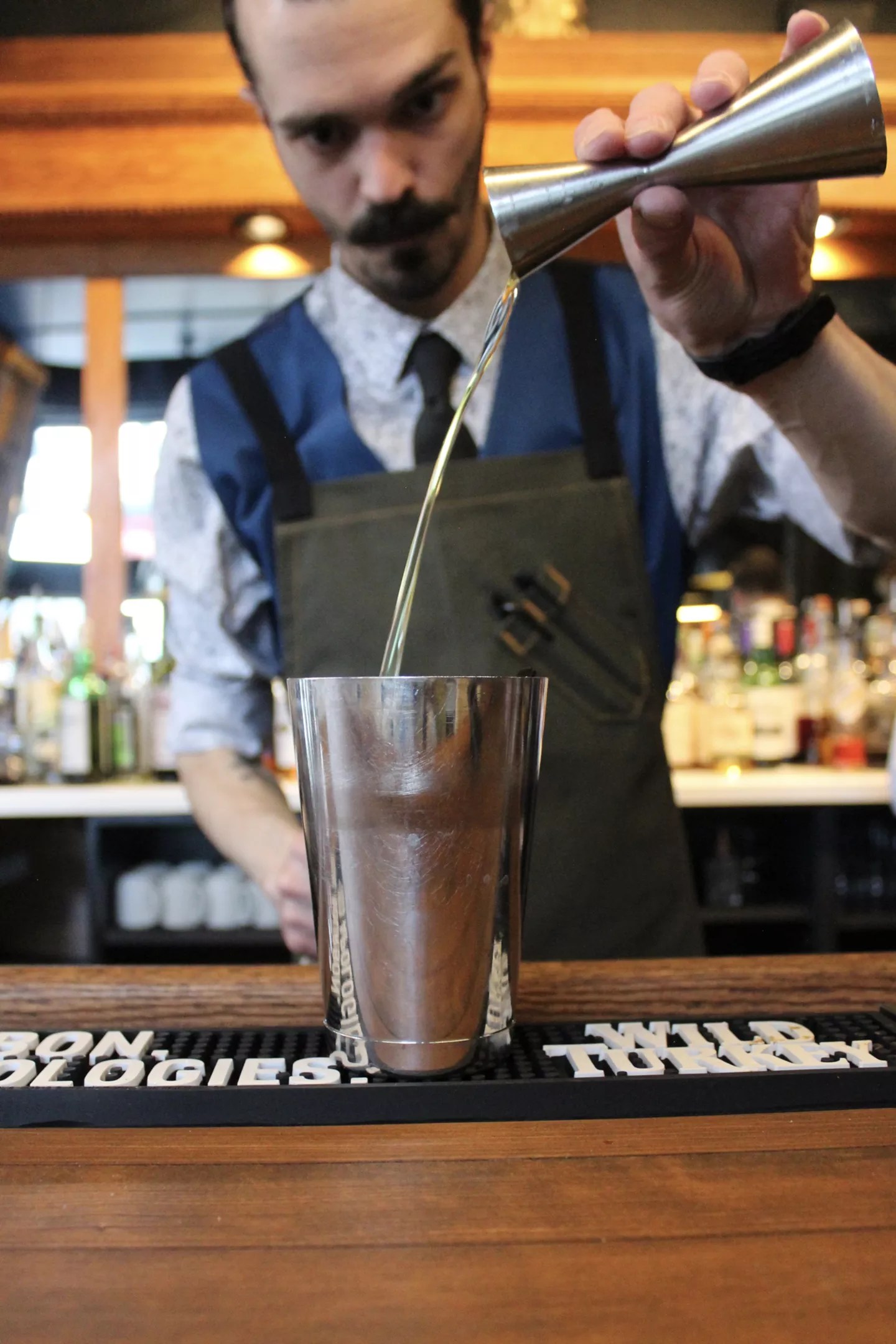 Bar manager/GM Addison Blyeth pour a cocktail at Salita, the new bar from Bonanno Concepts.