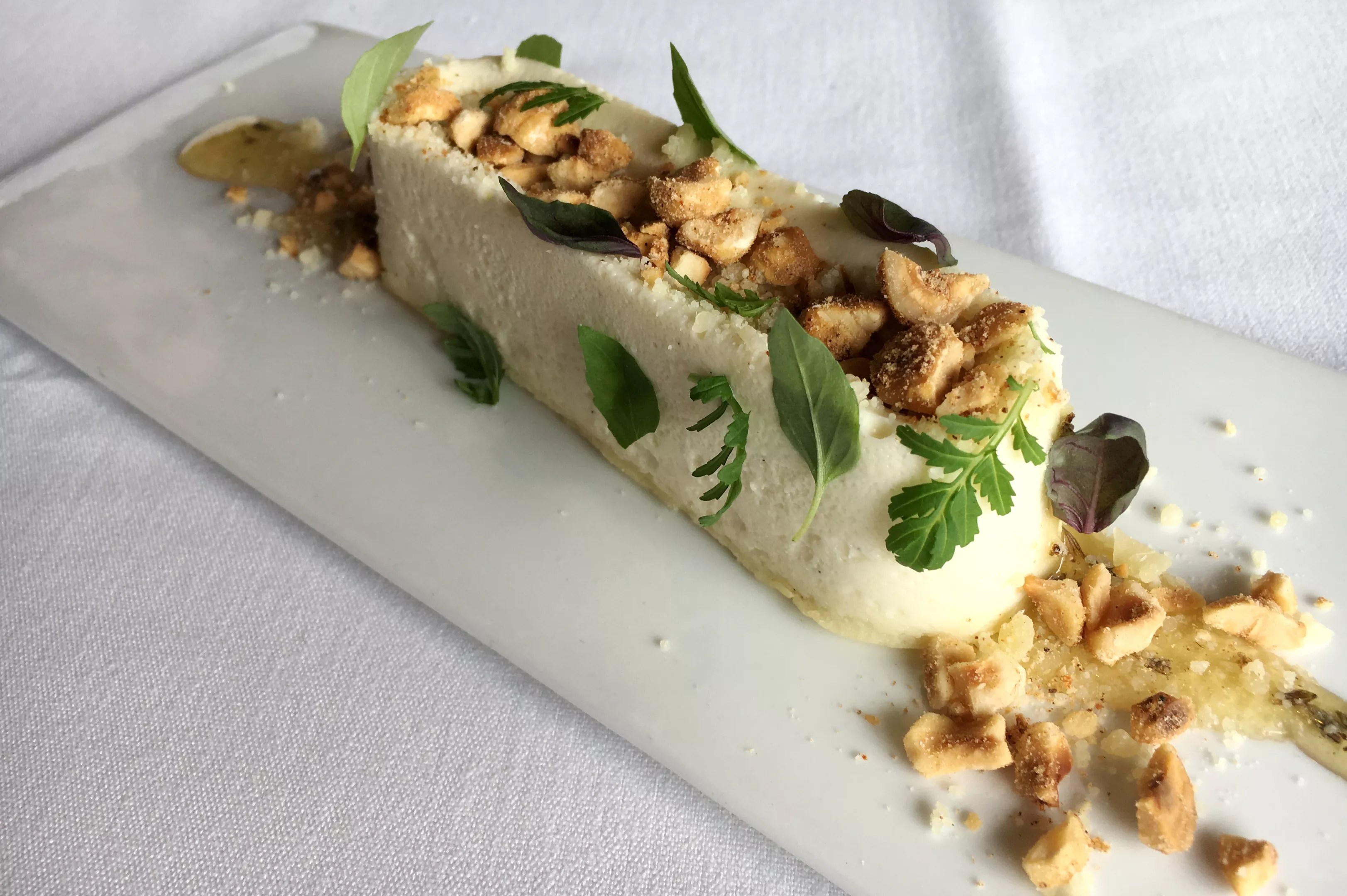 Housemade pastas include casarecce (resembling twisted cords) with braised goat and fava beans, and squid-ink spaghetti served with English peas, charred spring onions and ‘nduja sausage. Bolder colors of orange and purple make for a stunning octopus presentation: Carrot purée, the deep tint of the tentacles, and shavings of purple carrot – which Barolo owner Ryan Fletter says are often mistaken for dyed vegetables – combine atop a black plate, with a few crimson rings of red chiles to add a touch of heat. For secondi piatti, pork tenderloin gets the spring treatment with grilled ramps (a wild cousin of onions and garlic), a fresh herb pesto and a five-bean brodo. And dessert is a must when you’re treating yourself to dinner at the 27-year-old eatery; a crustless cheesecake served with hazelnuts, lavender honey and baby herbs makes for a semi-sweet end to the evening. Truett uses Castelmagno, a rare alpine cheese, for the dessert.