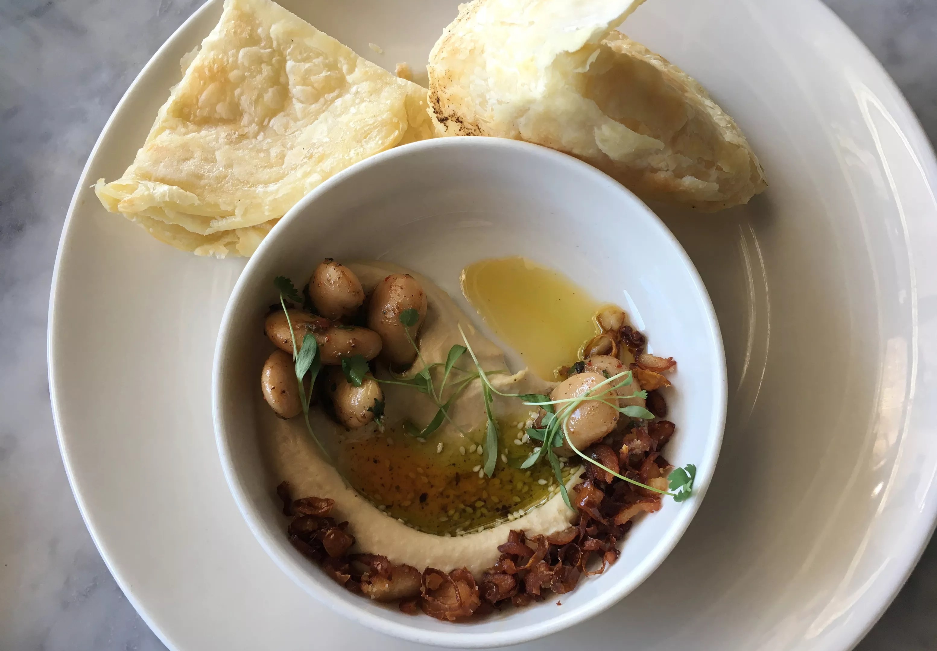 Mister Tuna’s hummus is made with gigante beans, which are also served whole alongside the dip.