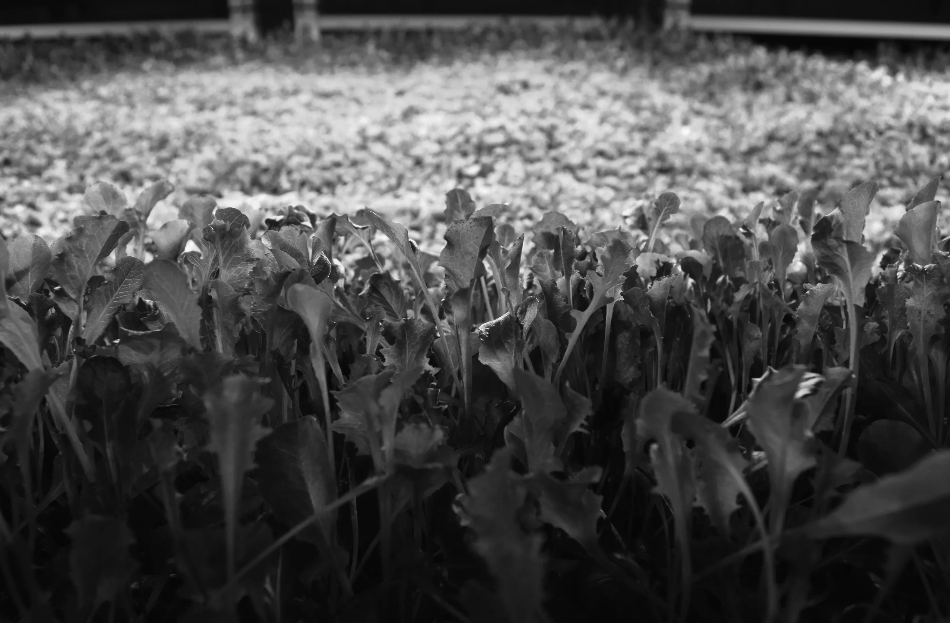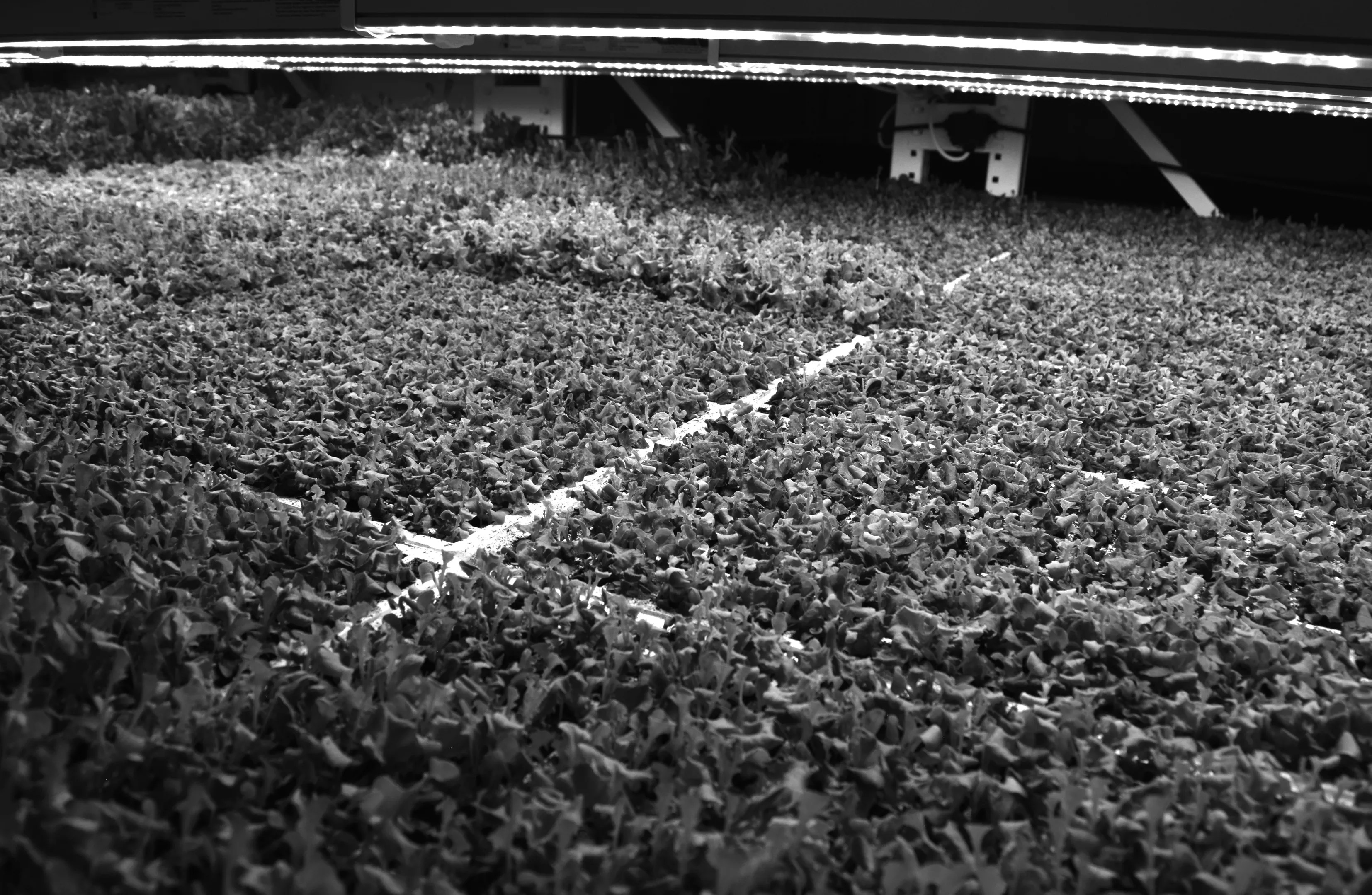 Once planted, the greens stay in these trays their entire life as a way to minimize labor and risk for contamination.