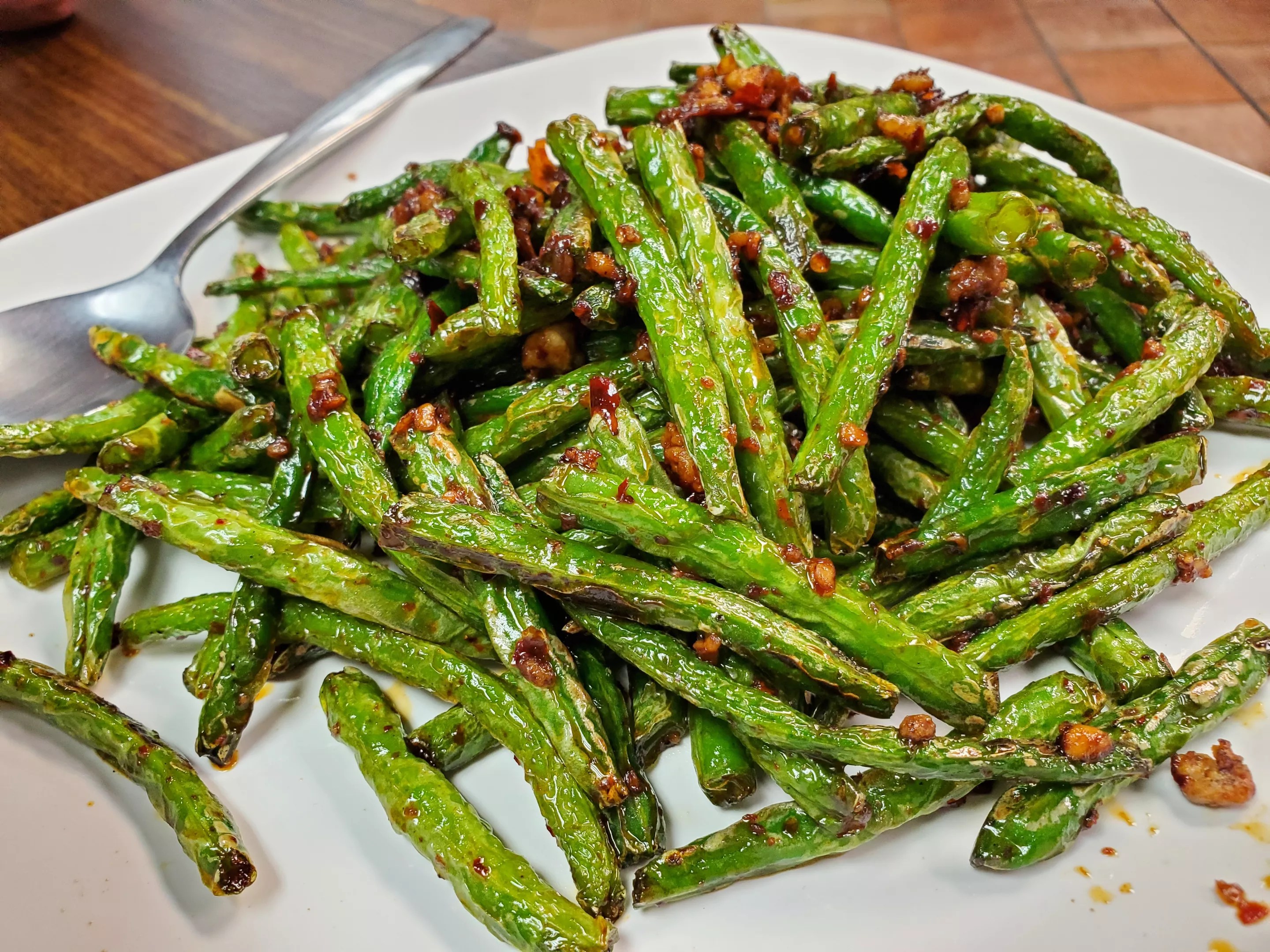 A heaping plate of pan-fried green beans ($14.95) is studded with savory, caramelized bits of ground pork. These, too, have a smattering of chile flakes, but umami is the main flavor, making this a nice reprieve from other, more spice-forward selections.