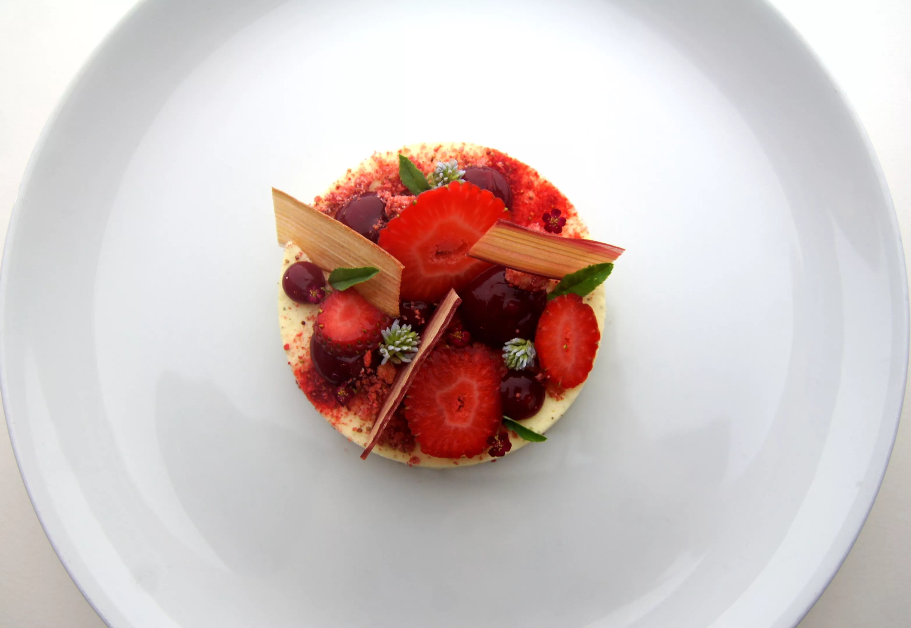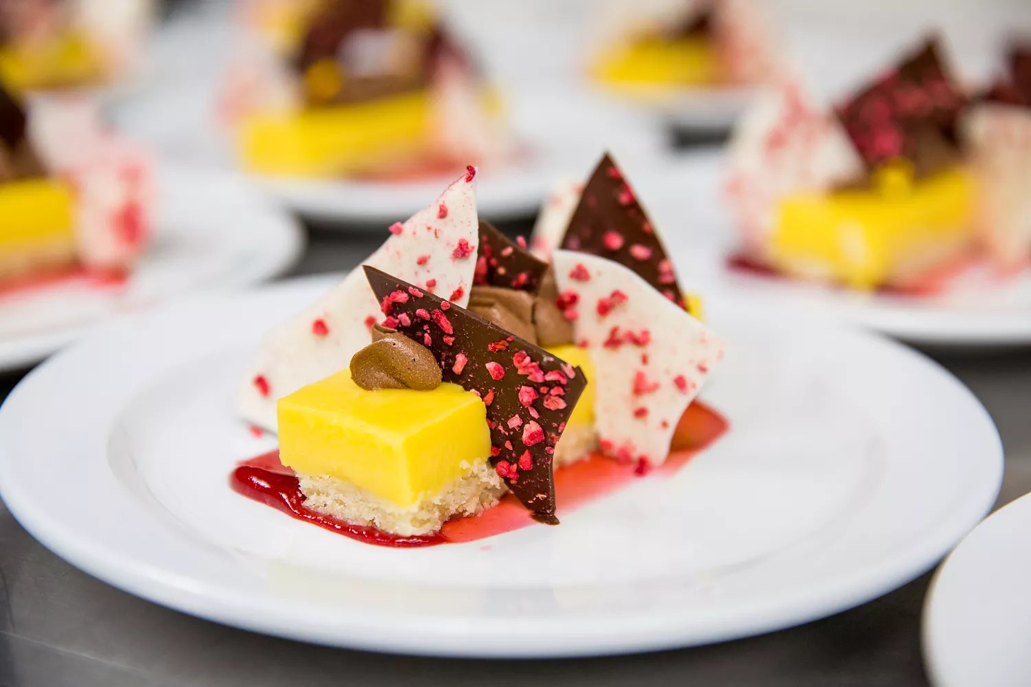 Nadine Donovan’s passion fruit tart on raspberry gel