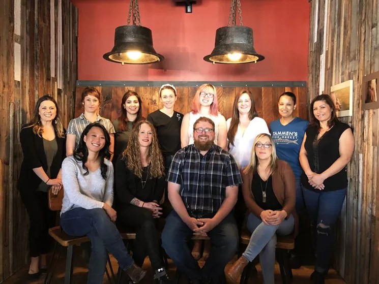 Donovan (top, second from left) was part of a group of women chefs and bartenders who joined Old Major for a fifth-anniversary celebration in 2018.