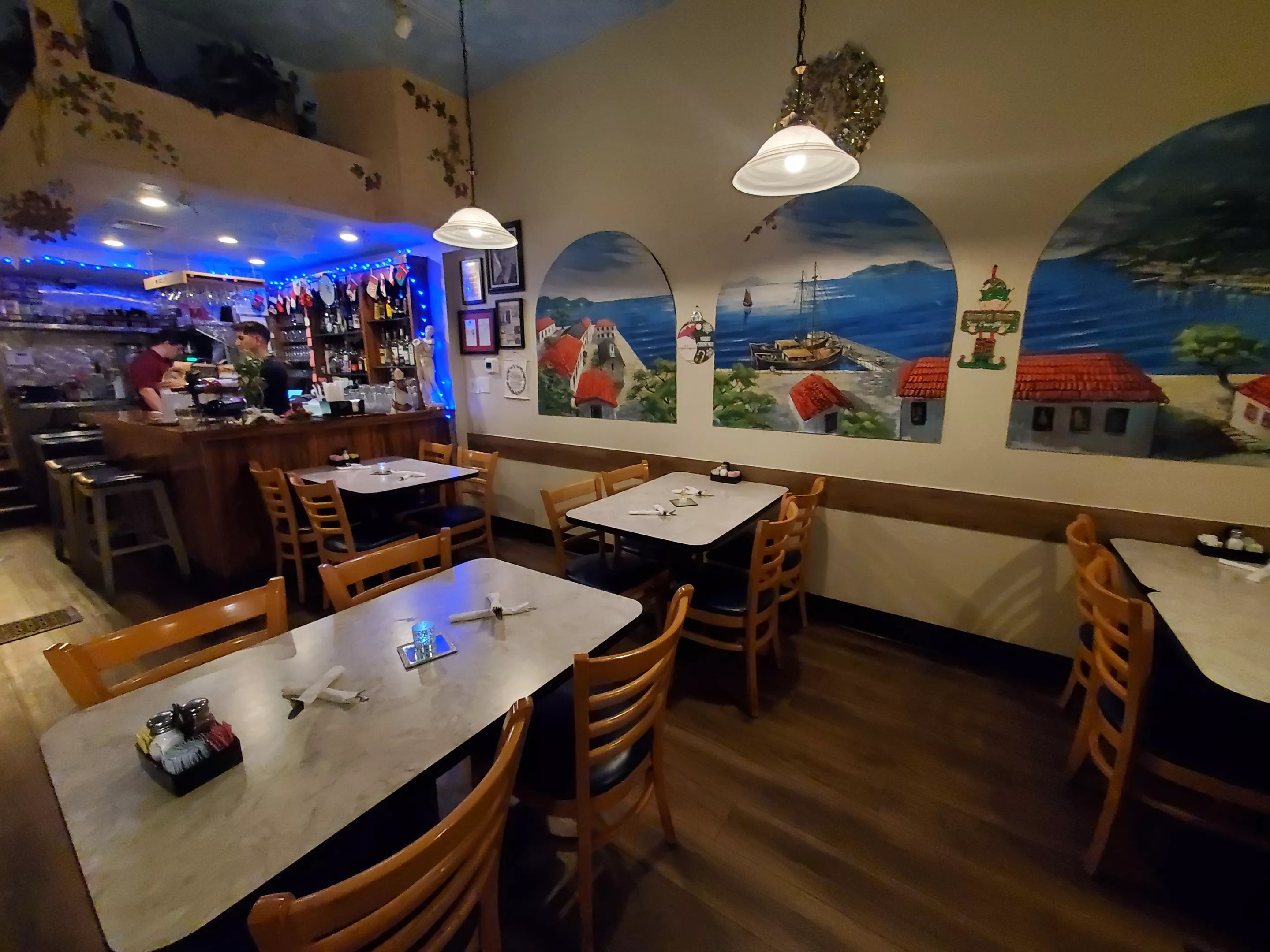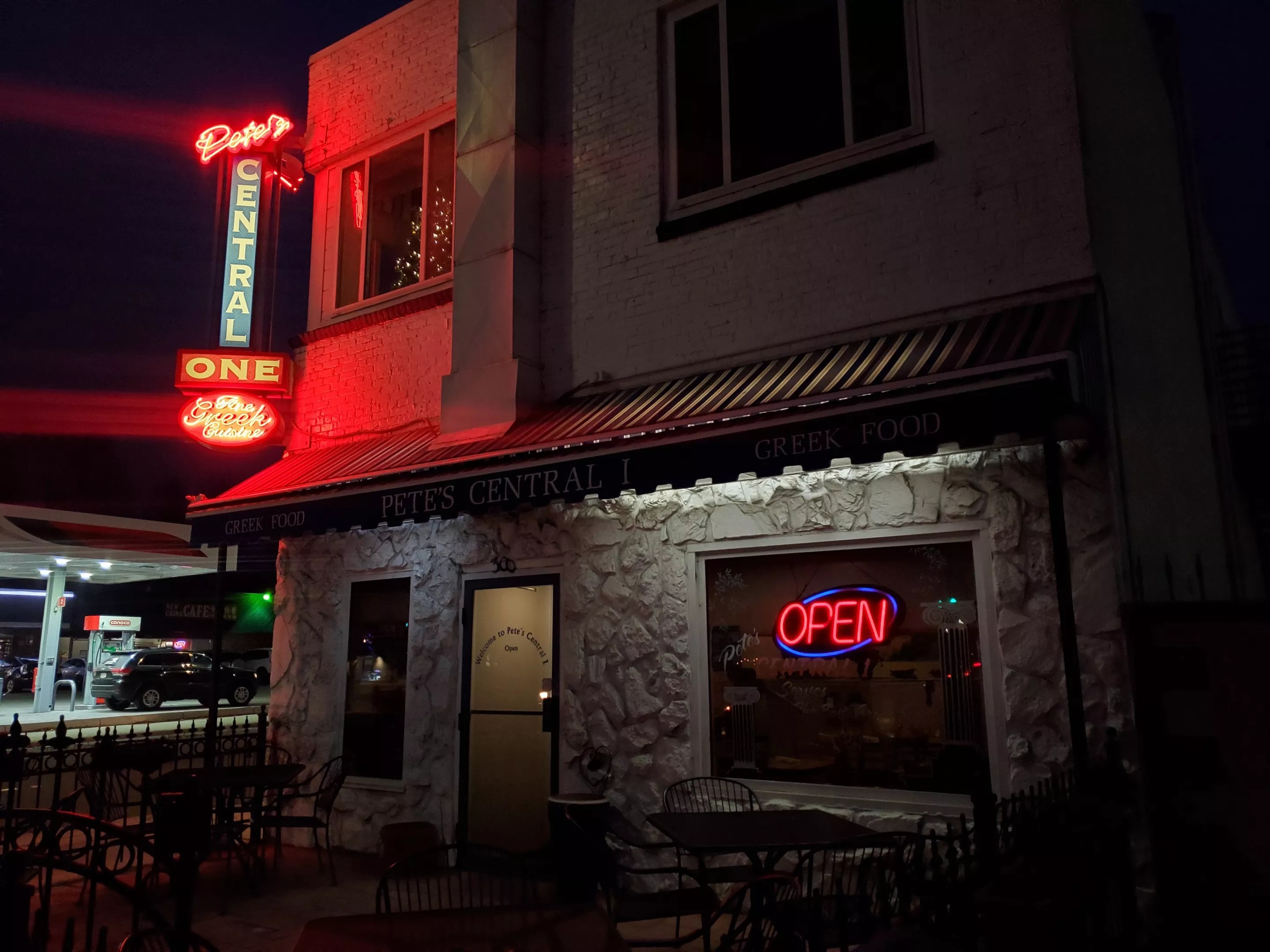 “I just think [Pete’s Central One] is so much different than any of our other places,” Barakos adds. While the Satire is a well-known source of late-night revelry and the diners have expansive menus that include American classics and Mexican food as well as some Greek dishes, Pete’s Central One is firmly rooted in Greek fare, served in an intimate dining room that’s decked out with Mediterranean coastal scenes.