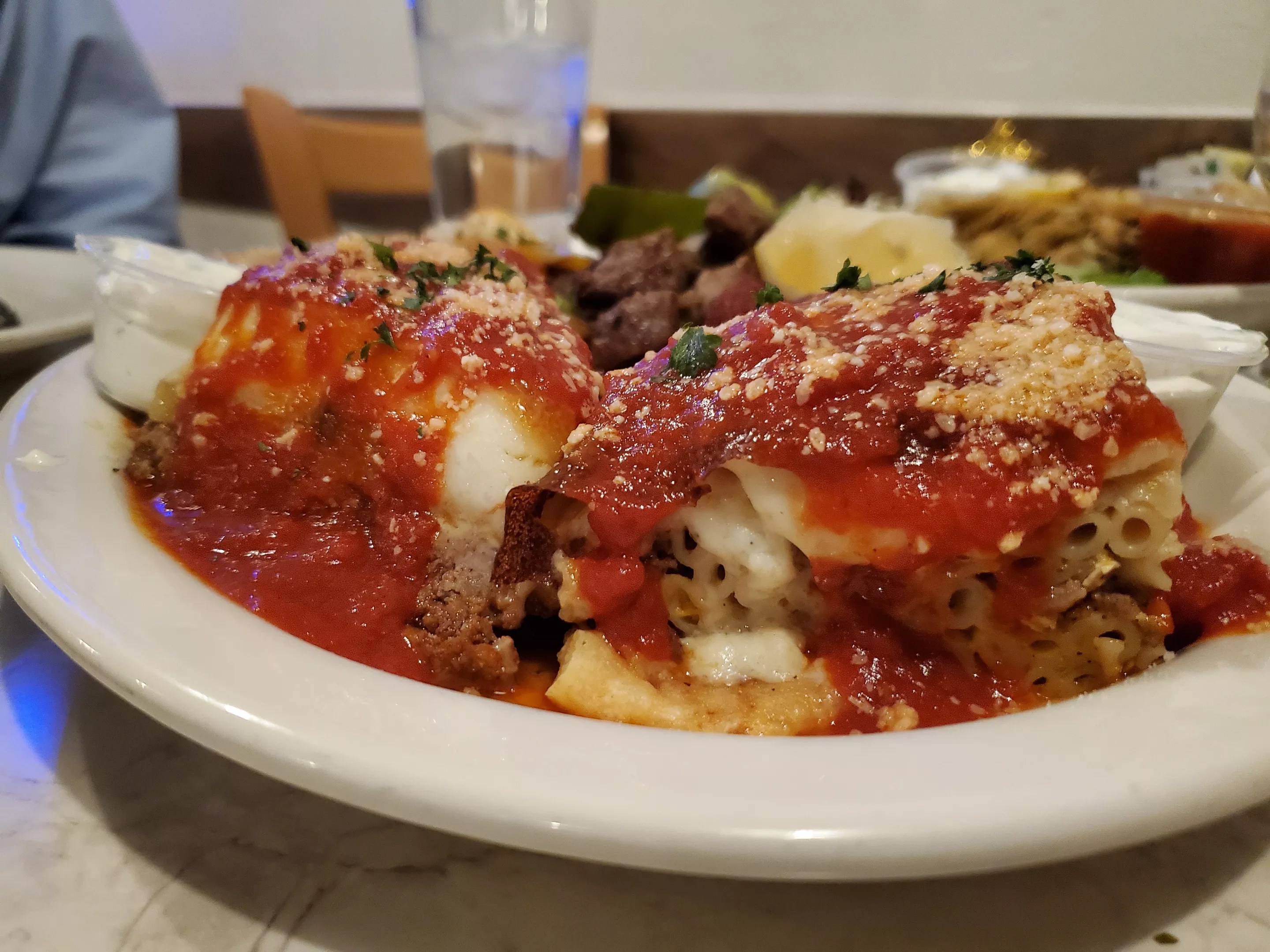 Nearly everything is made by Amalia Tatarides, a Greek woman who runs the kitchen, where she prepares hand-rolled dolmades, pastitsio (think Greek lasagna made with ground beef, large macaroni noodles, tomato sauce and creamy Parmesan Béchamel) and pastries like flaky galaktobouriko and custard-filled bougatsa. Dean Contos, Barakos’s uncle, also works in the kitchen most nights.