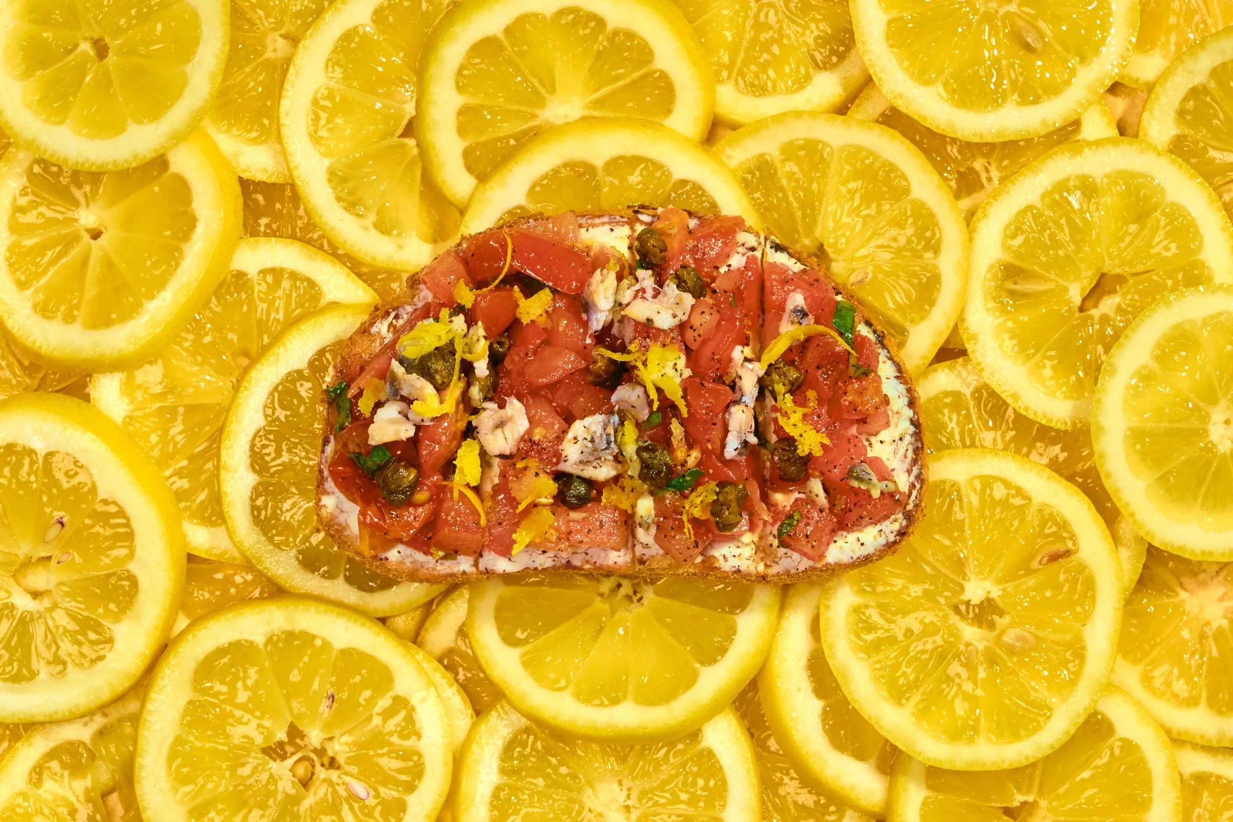 • What they say: Mascarpone, crushed tomato mix, fried capers, diced anchovy, lemon zest, cracked black pepper.