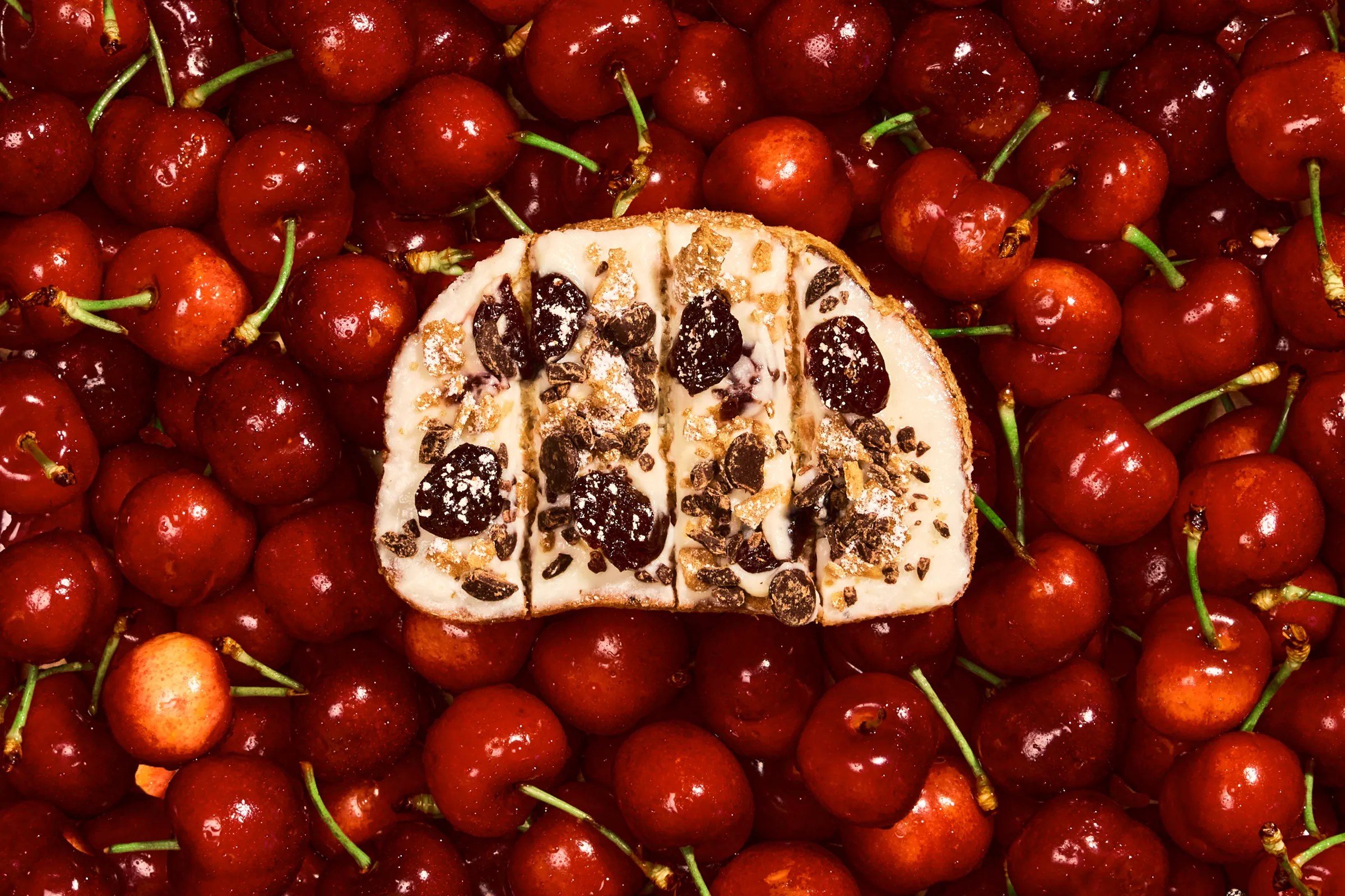 • What they say: Cherry cannoli filling, dried cherries, waffle cone crumbles, powdered sugar, chocolate chip shavings.