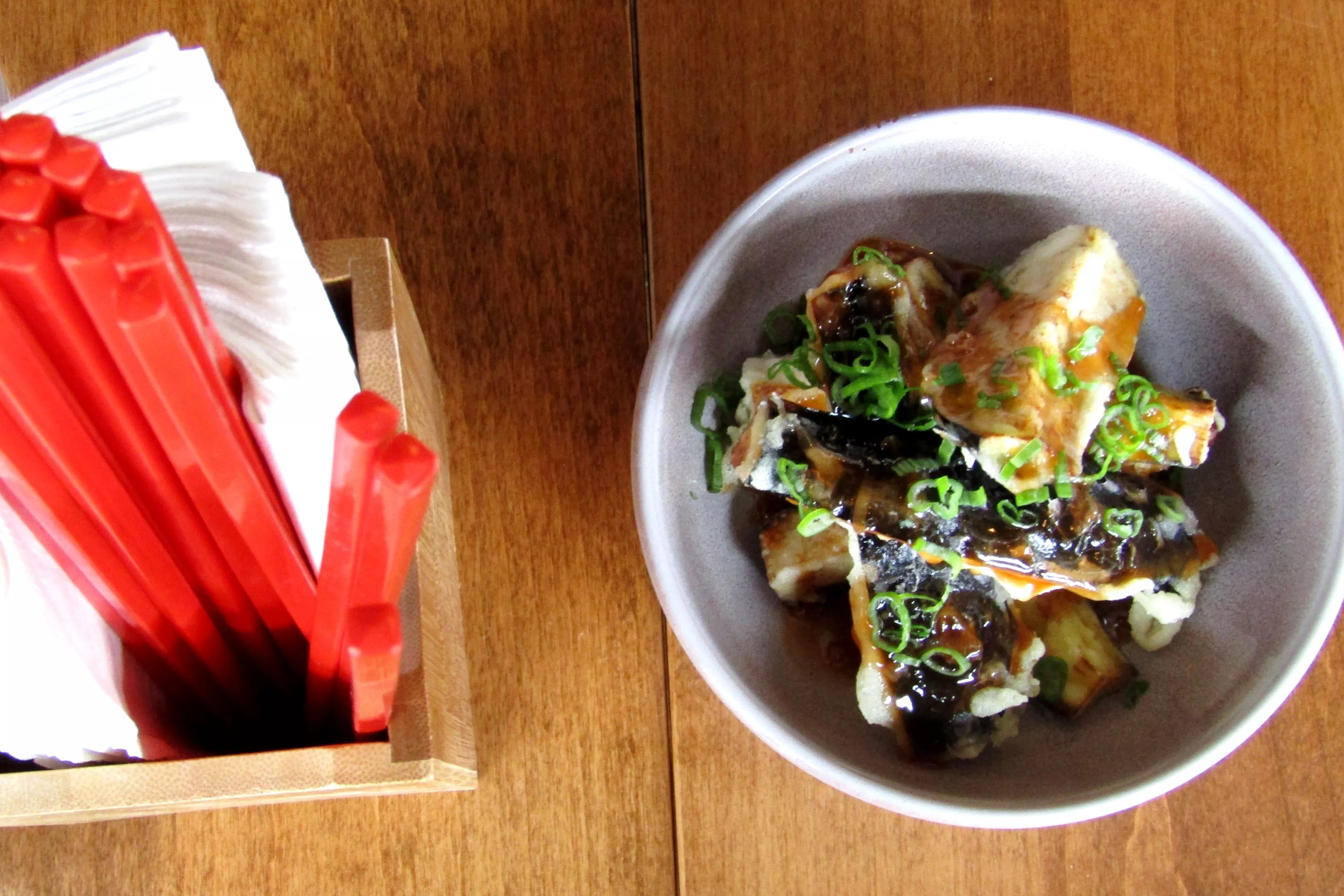 Fried Chinese eggplant with General Tso’s sauce – one of very few nods to American Chinese cuisine.