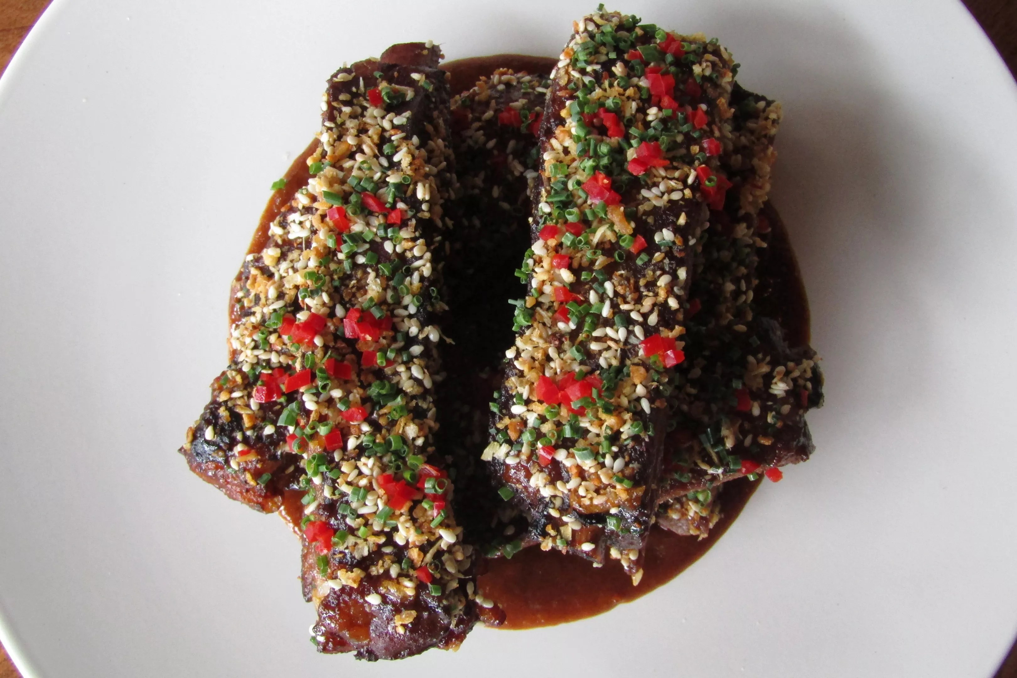 Shacha BBQ ribs in a complex sauce that involves multiple steps to create.