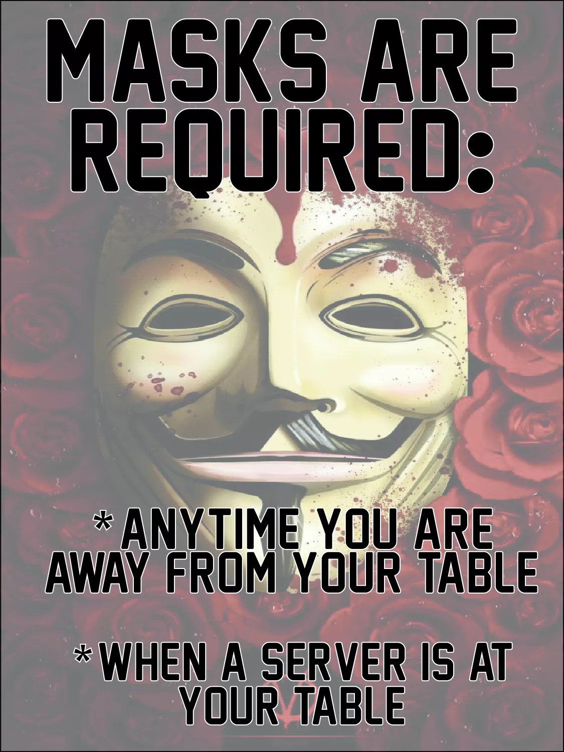 Woke up early, created some of the signage that we needed to open: signs about mask-wearing, moving tables, etc. We want to have signage and information everywhere, because a confused guest easily becomes an angry guest. But we wanted to present them in a way that the new rules didn’t seem overwhelming. So we decided to be a bit cheeky.