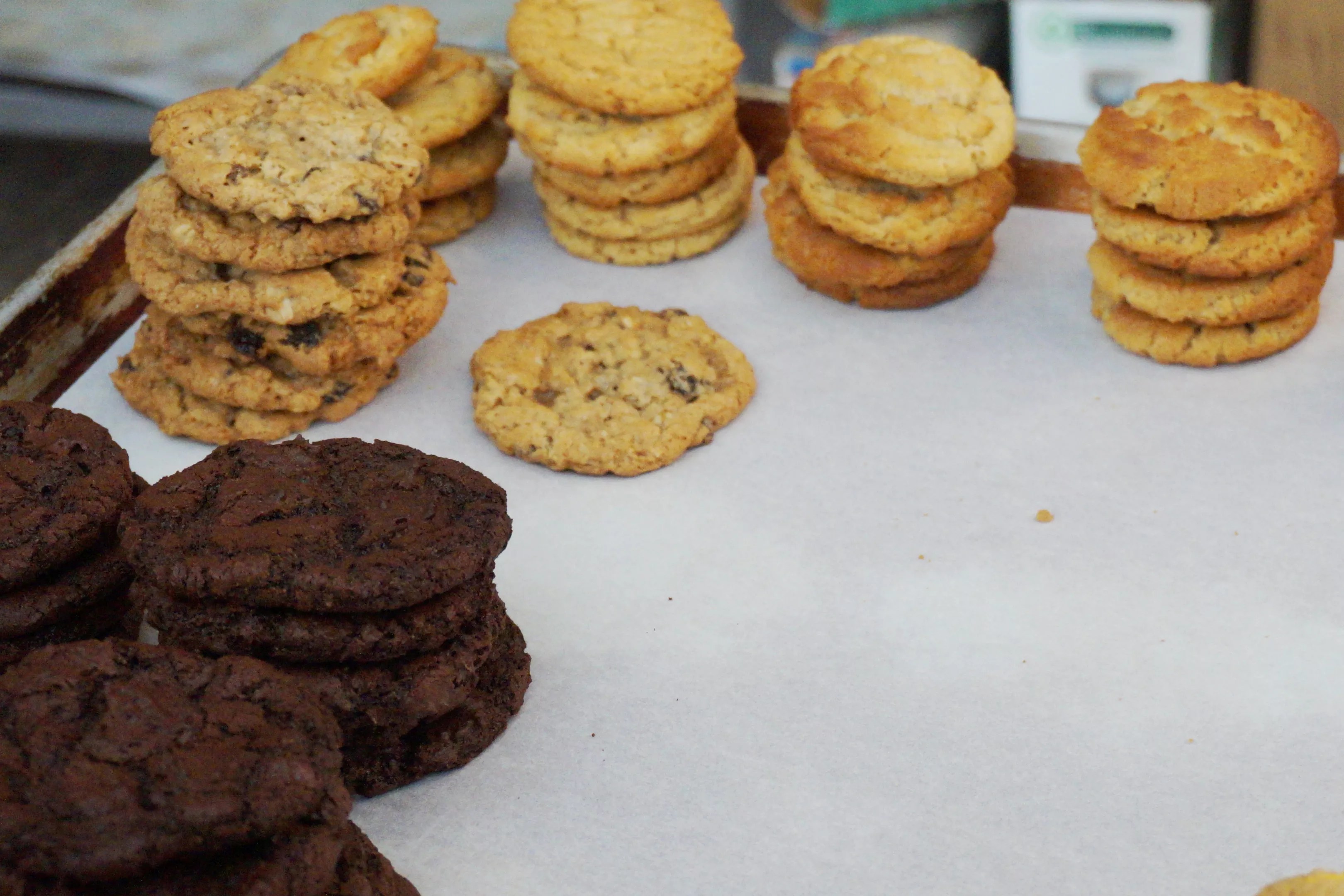 Cookies fresh from the oven cool off before being bagged.