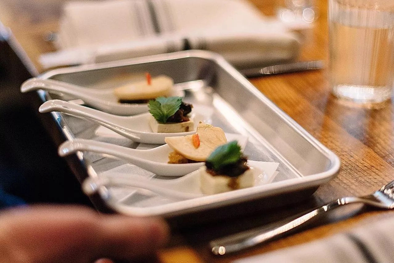 Diners are usually a mix of plant-based eaters and omnivores. “It’s amazing. We get a lot of people who are just curious and just want to try something new,” Maher says. “We sell out every dinner a week and half in advance.” He estimates that about 50 percent of attendees return for the next dinner.