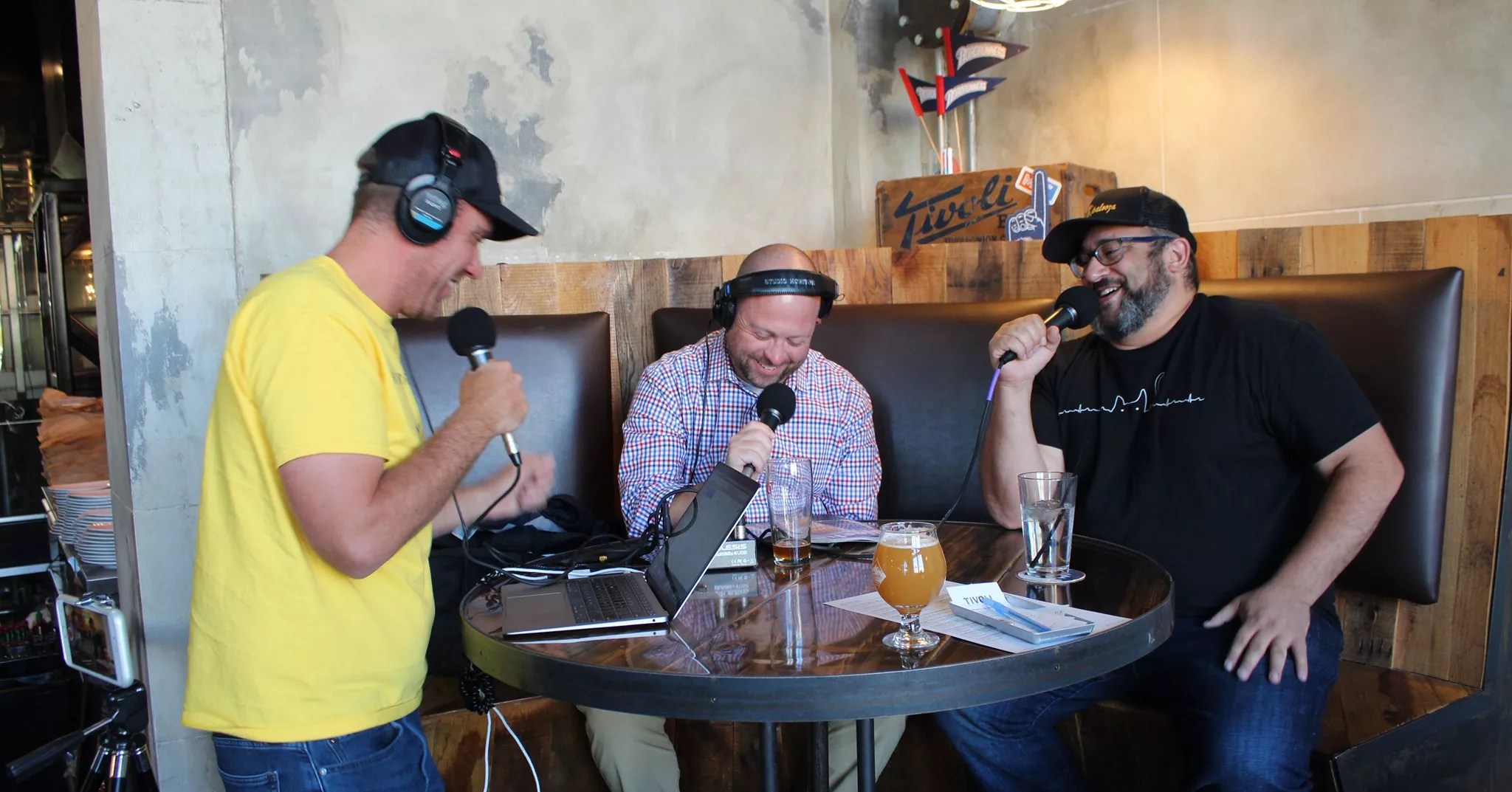 Sam Jay (left) and Jay Schrader (center) host the Unfiltered podcast.