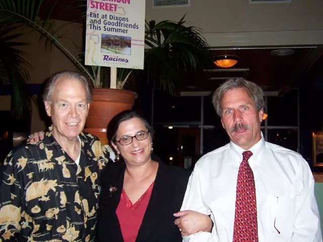 Happy faces from the opening of the second iteration of Racines; sadly, Dixon Staples, left, died four months later, leaving Lee Goodfriend, center, and David Racine, right, to carry on their mission of feeding the Everyman by themselves.