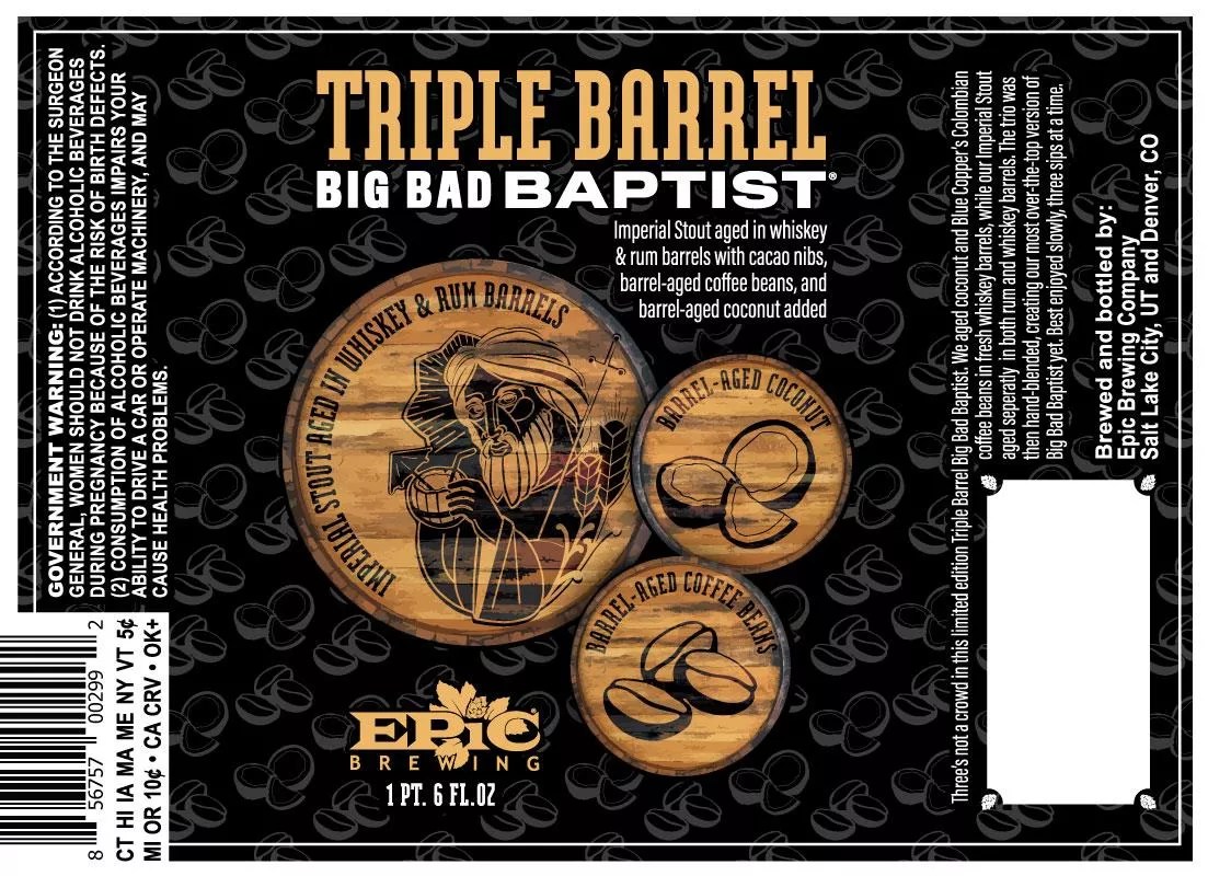 Last year, Epic Brewing thrilled imperial stout fans when it created two variations on Big Bad Baptist, an imperial stout made with coffee beans and cacao nibs, for the first time. Double Barrel Big Bad Baptist was flavored with barrel aged coffee from Hot Box Roasters, while Big Bad Baptista included Mexican coffee, vanilla and cinnamon. This year, Epic is going a different direction with Triple Barrel Big Bad Baptist, which was brewed with cacao nibs, coffee beans and shredded coconut that was aged in whiskey barrels. The beer was then aged in whiskey and rum barrels and blended back together. It’s going to create a very warm winter.