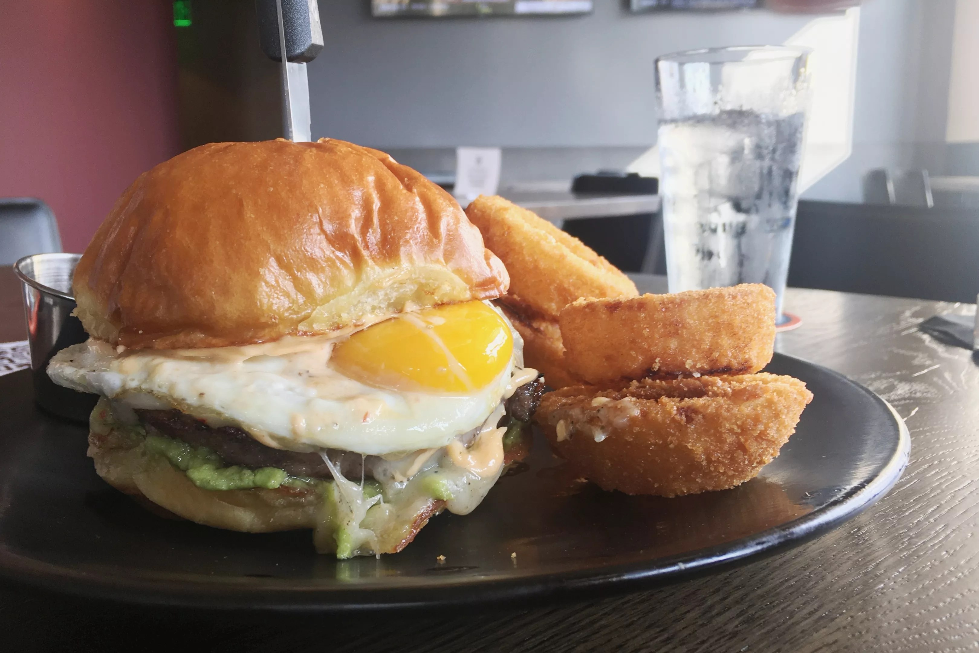 For now, the burgers themselves, and a few other all-American menu items, will have to be the main draw. The Original 50/50 comes with pepper Jack cheese, guacamole, chipotle mayo and a sunny-side-up egg; the bacon in the burger blend gives the whole thing a smoky flavor like it’s been grilled outdoors.