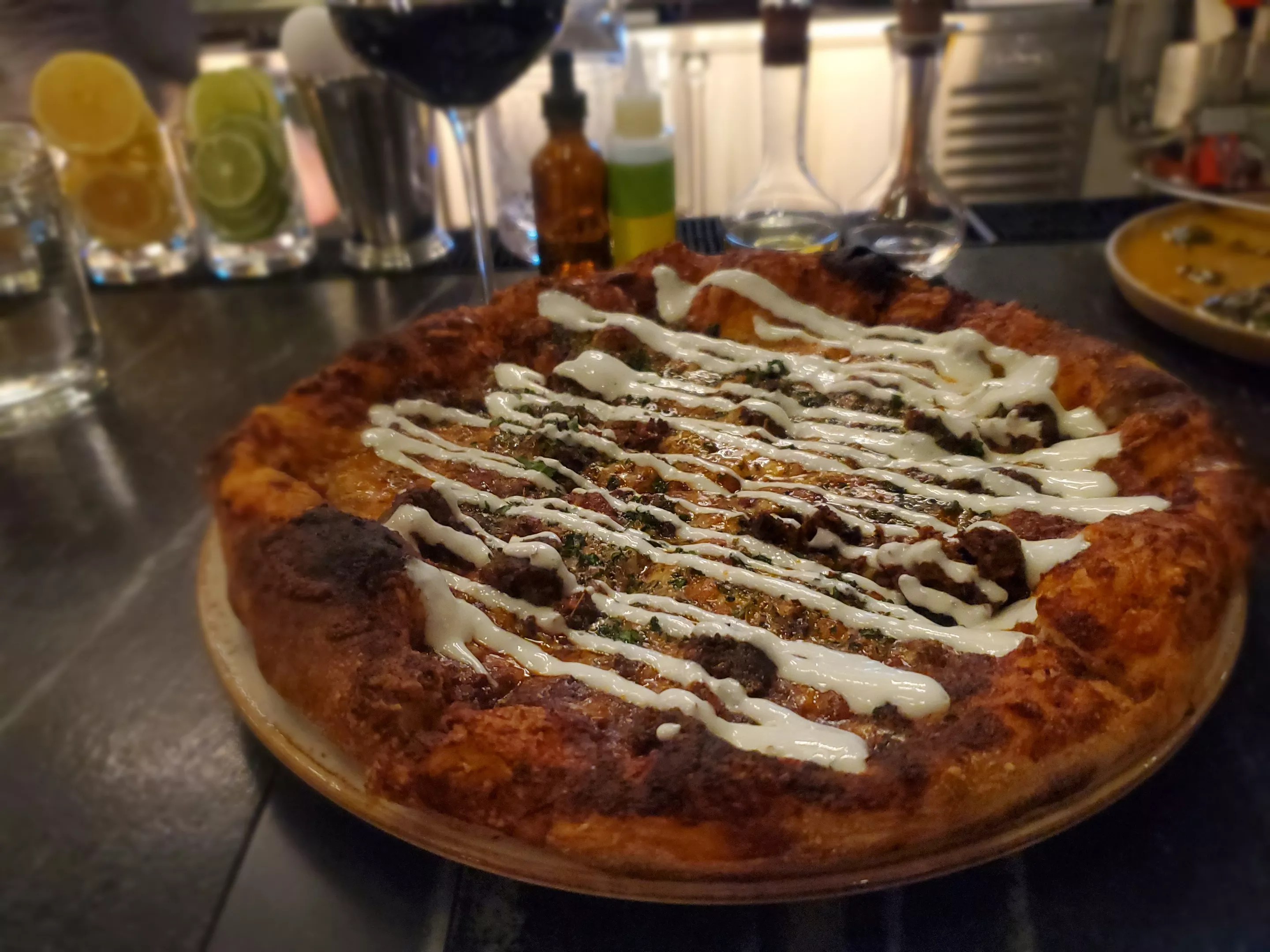 The Greenwich, which opened in RiNo in late September, is one of the places stepping up Denver’s pizza game. More evidence of that: the meatball pie, topped with Colorado lamb meatballs and a spicy tomato sauce, and drizzled with tangy honey labneh. The crust is sourdough, made using chef Justin Freeman’s ten-year-old starter.