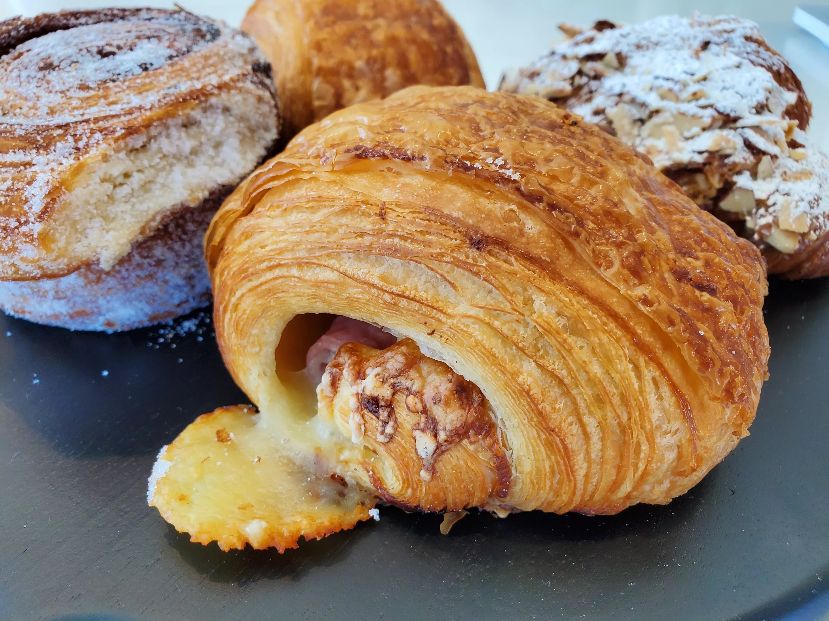 Another new spot to start your day (or get a midday pastry, no judgment) is Hearth, which debuted last month behind Uchi in RiNo. The small bakery is bright and open, with a patio that’s perfect for an outdoor remote work session. Owner and head baker Matt Quinlisk was previously the pastry chef at Moxie Bread Co. in Louisville, and here he’s serving up delectable pastries like raspberry and white chocolate scones, Hatch green chile and cheddar twirls, and my favorite of the bunch, the ham and cheese croissant.