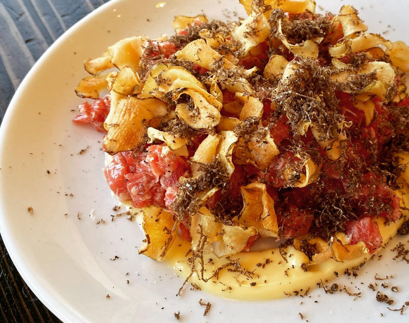 Right now, Boulder’s Oak at Fourteenth is celebrating Italian week with specials and guest chefs. Chef Steve Redzikowski shared this tempting photo of one of the items you can try: wagyu beef tartare with Parmesan, sunchokes and black truffles.
