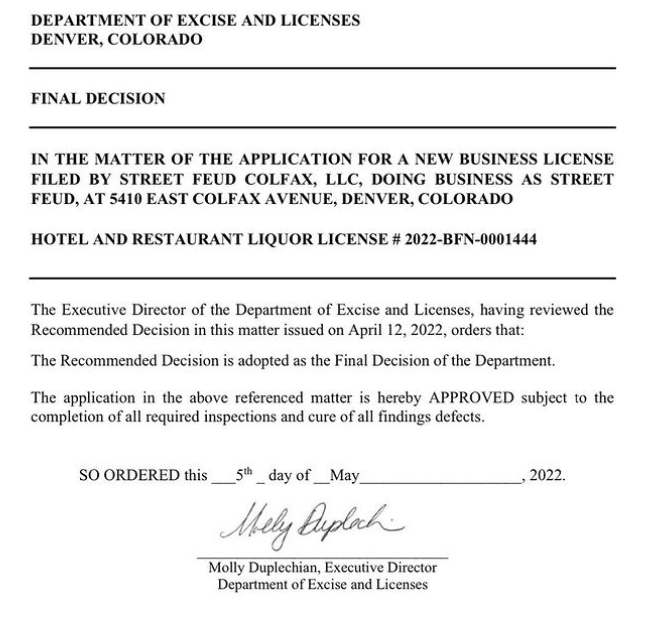 Street Feud, which opened on East Colfax late last year and nabbed our pick for best fries in the Best of Denver 2022, just got some good news: Its liquor license was approved. Boozy beverages will be added to the lineup soon. Cheers!
