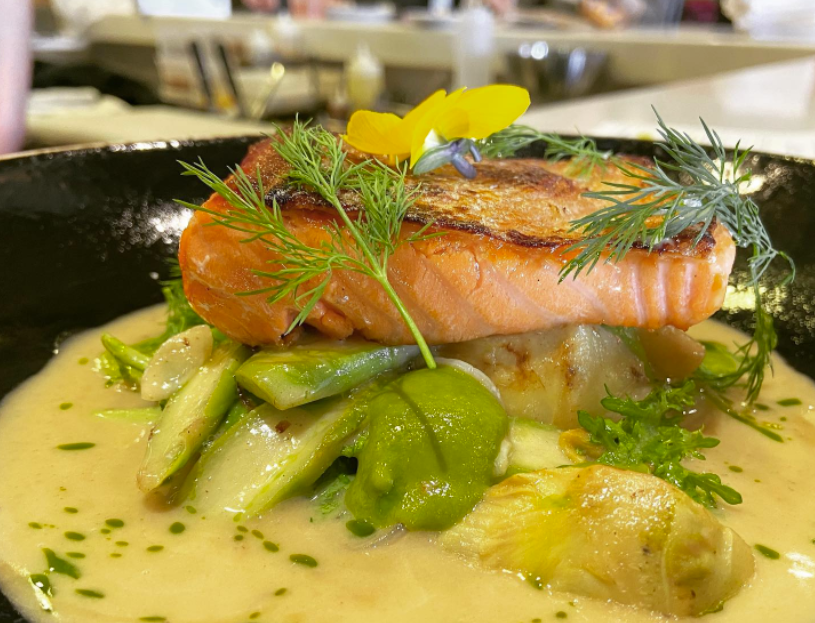 In Boulder, Hosea Rosenberg’s Blackbelly (1606 Conestoga Street) is dropping new spring eats, too. Right now, stop in to try the Ora King salmon (often described as the wagyu of salmon) with chamomile whey nage, artichoke, asparagus, gold frill mustard and chive oil.