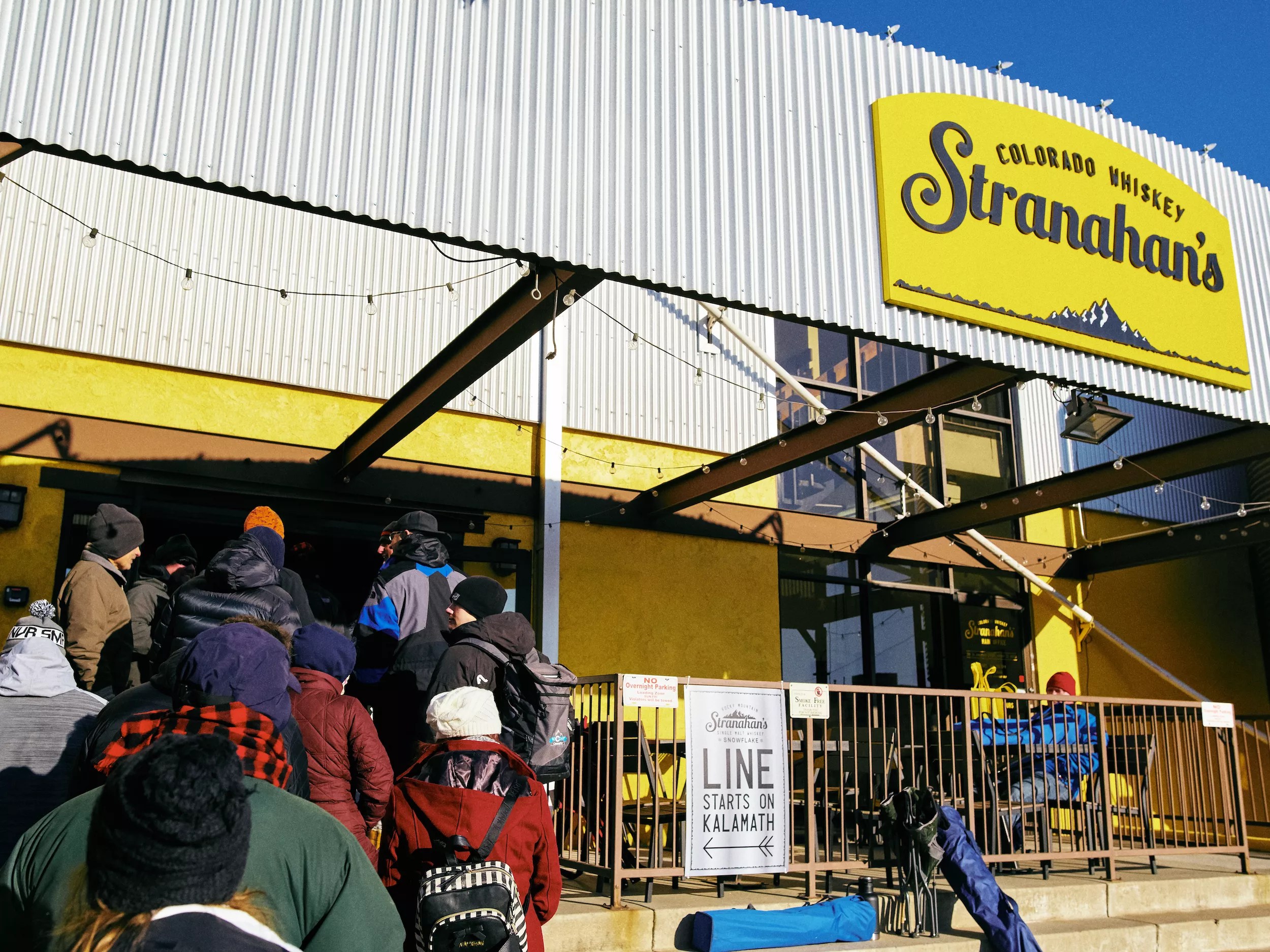 Folk heading into Stranahan’s distillery to get a bottle of Snowflake in 2017.