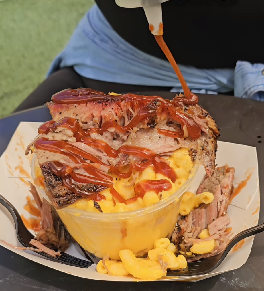 The menu at Blessed BBQ includes smoked chicken, pork and brisket, as well as cheddar jalapeño sausage links, mac bowls, barbecue sundaes made with two layers of food, and barbecue nachos, along with sides such as coleslaw, mac and cheese, pit beans and potato salad.