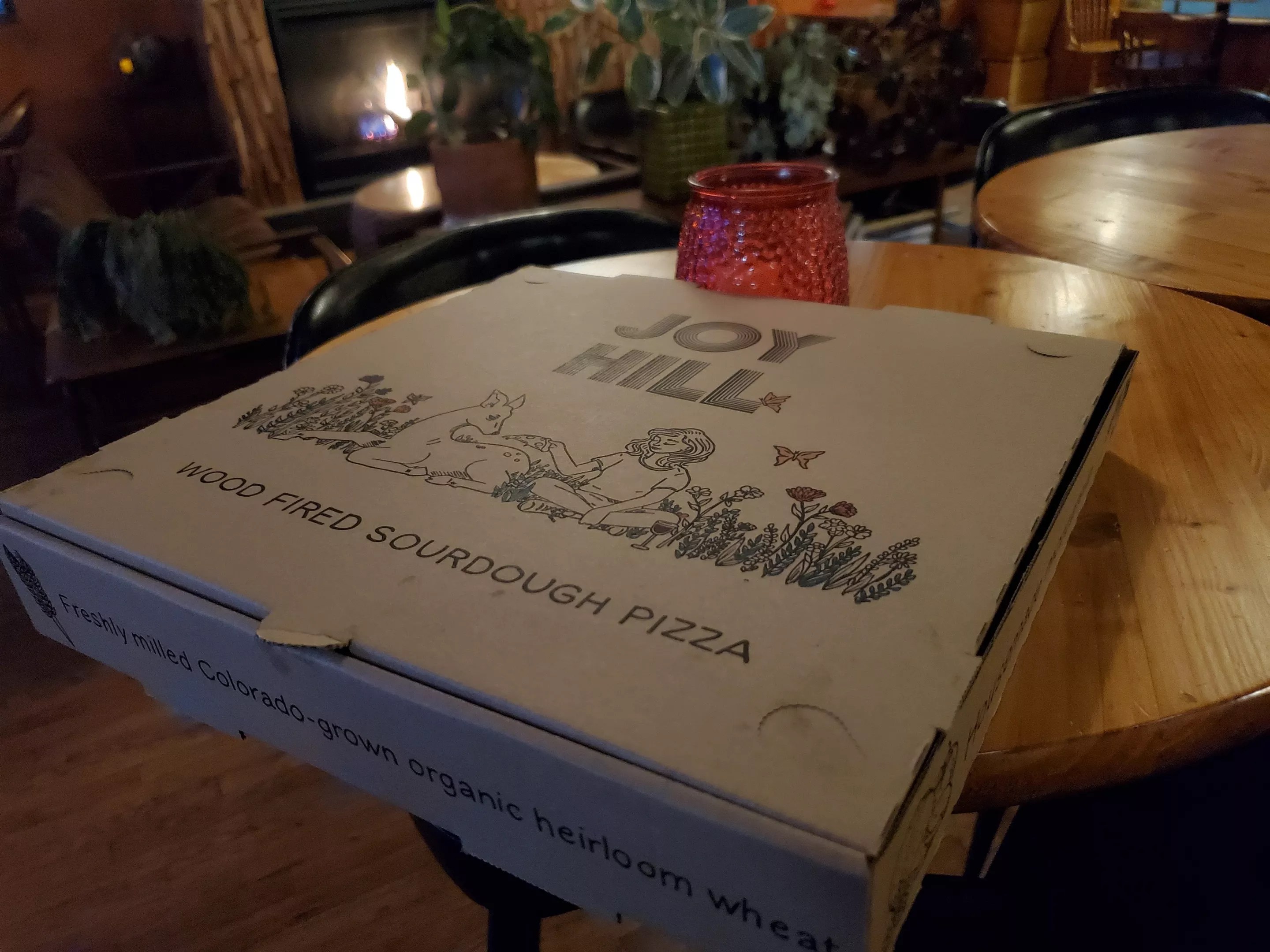 While many restaurants that serve pizza use generic boxes or sport fairly typical designs, Joy Hill’s boxes stand out as Denver’s most whimsical way to take a pie to go.