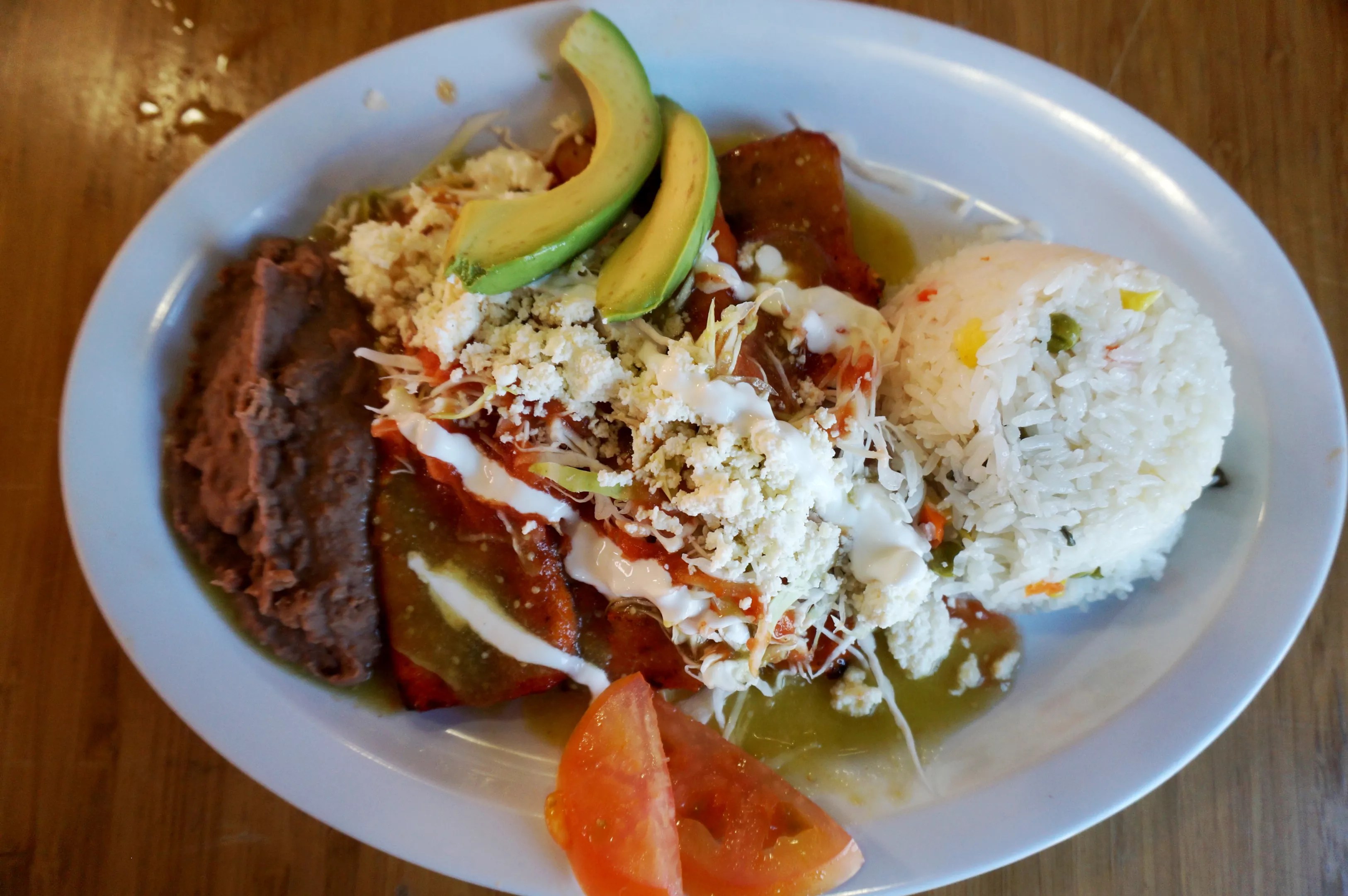 While working in other kitchens, though, he learned valuable skills that help him with his own establishments. One former boss “pushed me to the limit, but that’s the way it should be in the restaurant business,” he says. He applies those early lessons not just to running his business and maintaining a clean, safe kitchen, but to cooking. Enchiladas are one of the house specialties at Kahlo’s; the menu lists eight different styles, some distinctive to Uruapan – and none of them weighed down by molten yellow cheese.