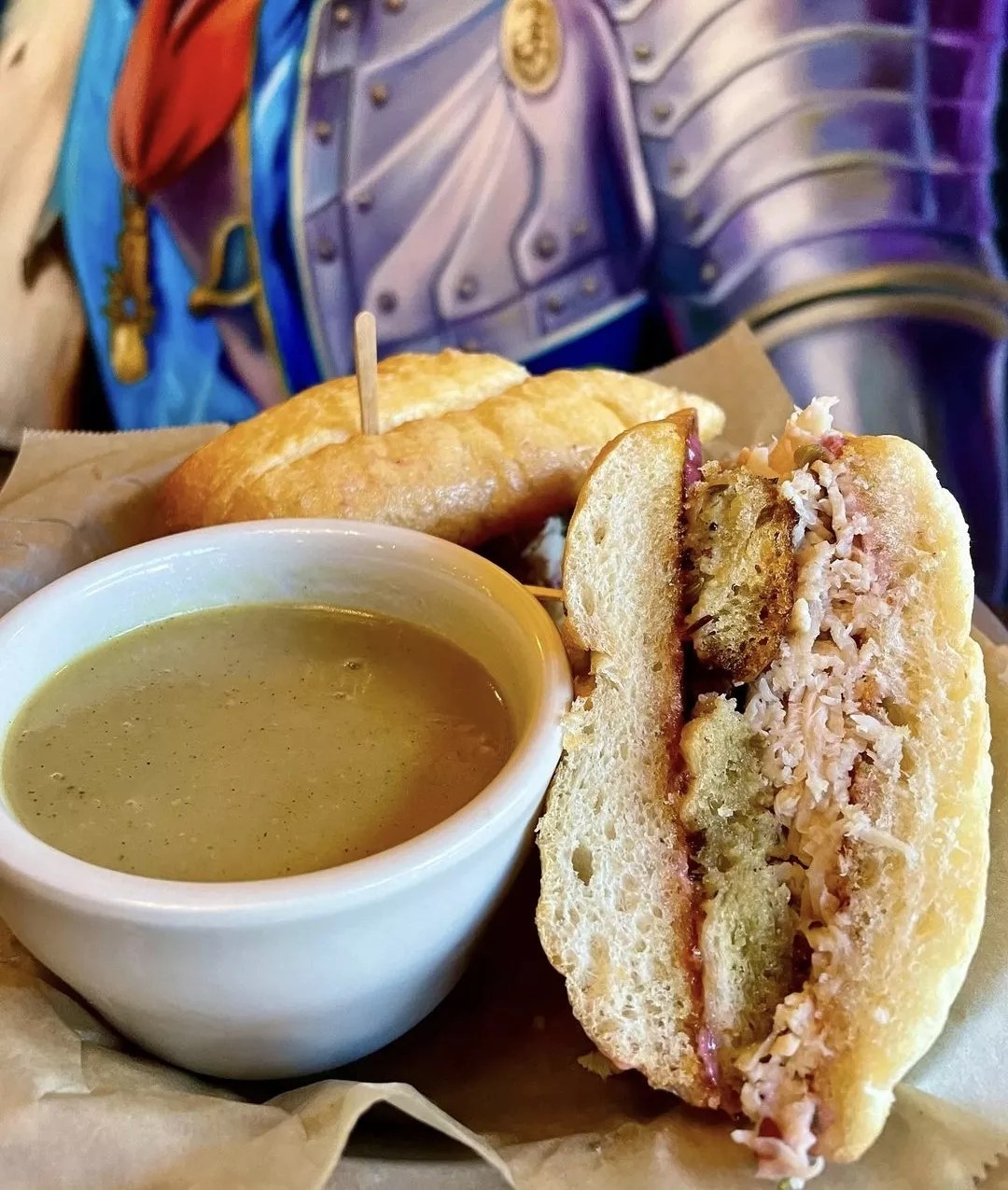 It’s not available year-round, so don’t miss the Thanksgiving spin on a French dip at Pony Up this season. The sandwich comes with sliced roasted turkey, pork sausage stuffing and cranberry mayo, with sage gravy for dipping.