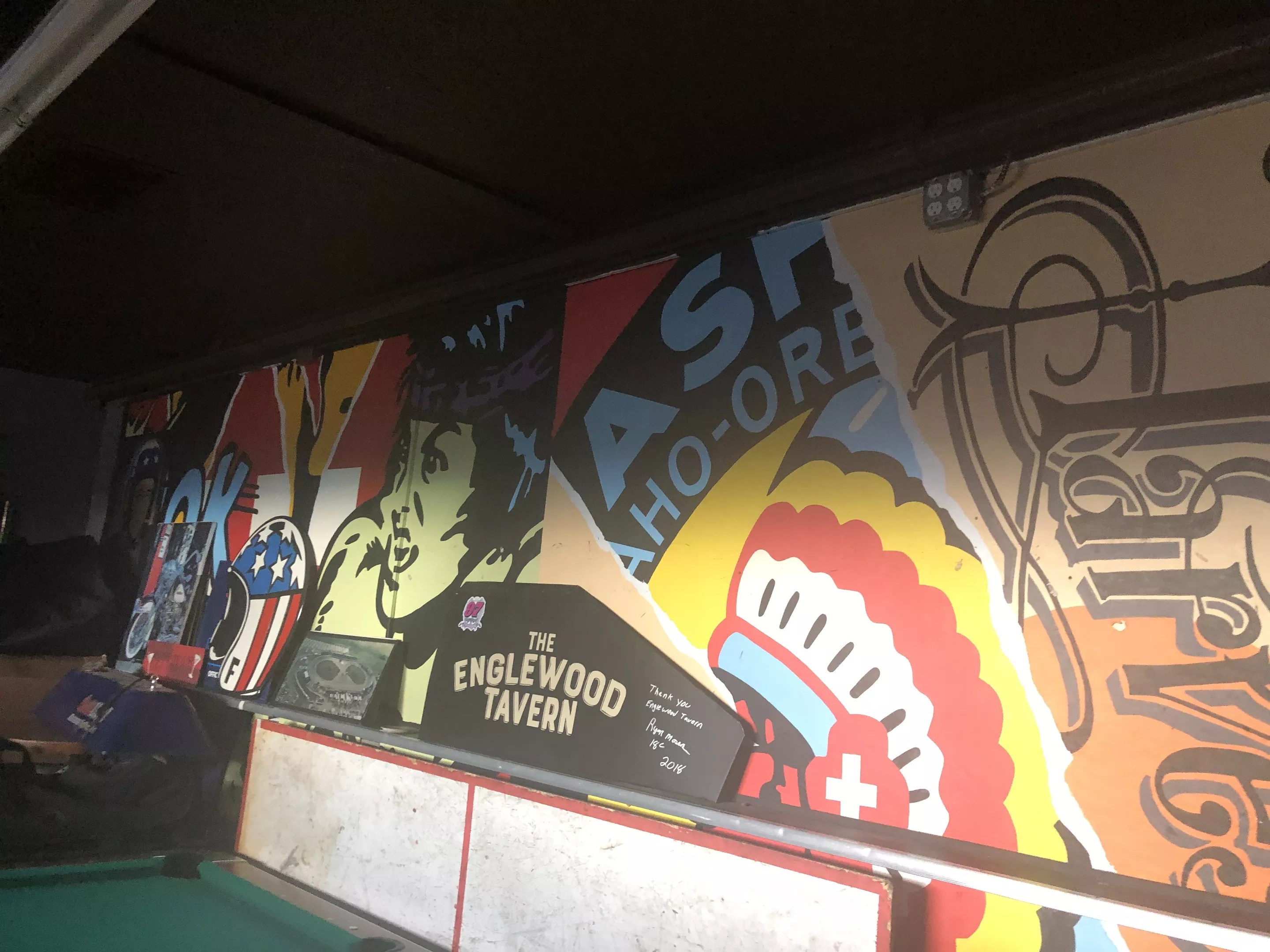 The mural near the stage area at the Englewood Tavern is the work of co-owner Jesse Frazier.