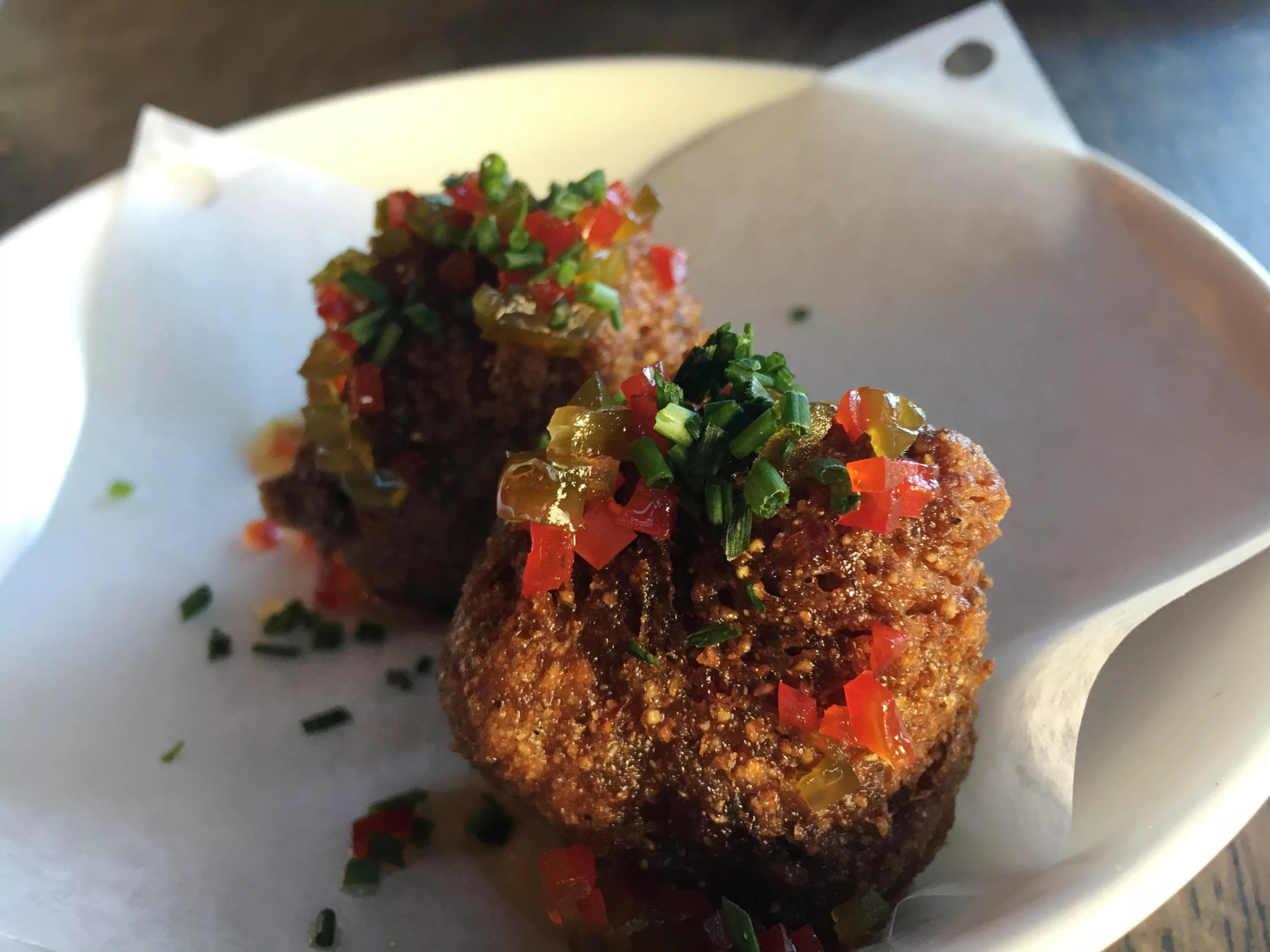 Shrimp hush puppies from Hedge Row, which is participating in Cherry Creek North Food & Wine.