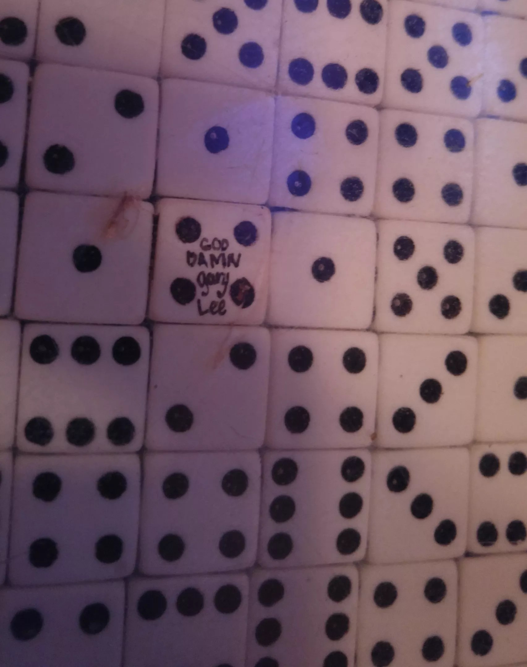 The owners of the Horseshoe have connections to another Denver bar-scene legend, the late Gary Lee Bomar, who was the proprietor of Gary Lee’s Motor Club and Grub. Before opening his own spot, Bomar worked at the Horseshoe; Unruh points out the spot on the bar, tiled with more than 24,000 dice and sealed with clear epoxy, where Bomar, who passed away in 2015, left a permanent mark. As Unruh tells it, Bomar was messing around trying to pick a dollar up off the bar with a huge kitchen knife; he ended up smashing part of the epoxy. Before fixing the damage, he wrote in tiny letters on one of the dice “God Damn Gary Lee.” The writing is still visible, sealed under new epoxy, at the end of the bar nearest the door, and serves as a sort of memorial to a man that the Denver bar and music scene misses dearly.
