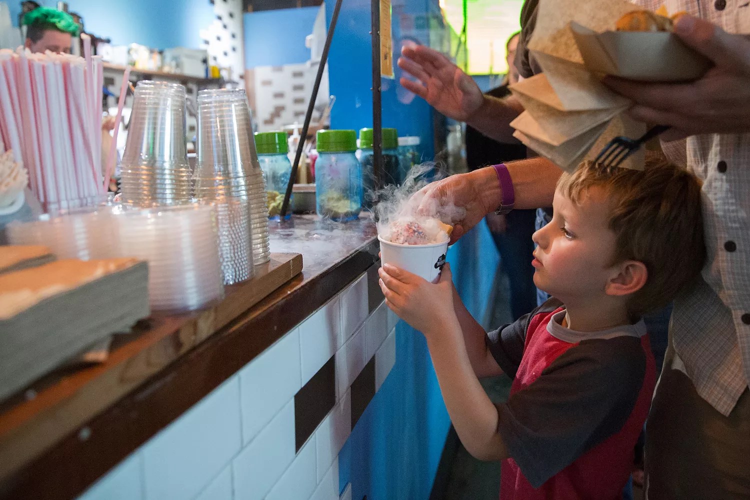 The Inventing Room will be back in time for sultry summer weather, though: Kleinman is reopening the shop on Saturday, June 1, after spending a few months figuring out the best way to run it with a leaner staff. And along with maintaining a busy catering schedule over the winter, he’s been experimenting with some wacky new ideas to please kids and adults alike come June. The most intriguing is edible wallpaper, inspired by the fruit-flavored wall covering in Willy Wonka and the Chocolate Factory. Rather than licking the walls, customers will be able to purchase sheets of rice paper imbued with creative flavors and printed with the same design that appeared in the movie. Kleinman says he’ll have a whole rack of grab-and-go desserts for customers who may not want to wait for a liquid-nitrogen creation. The dessert bar will be open from 2 to 10 p.m. Thursday through Sunday.
