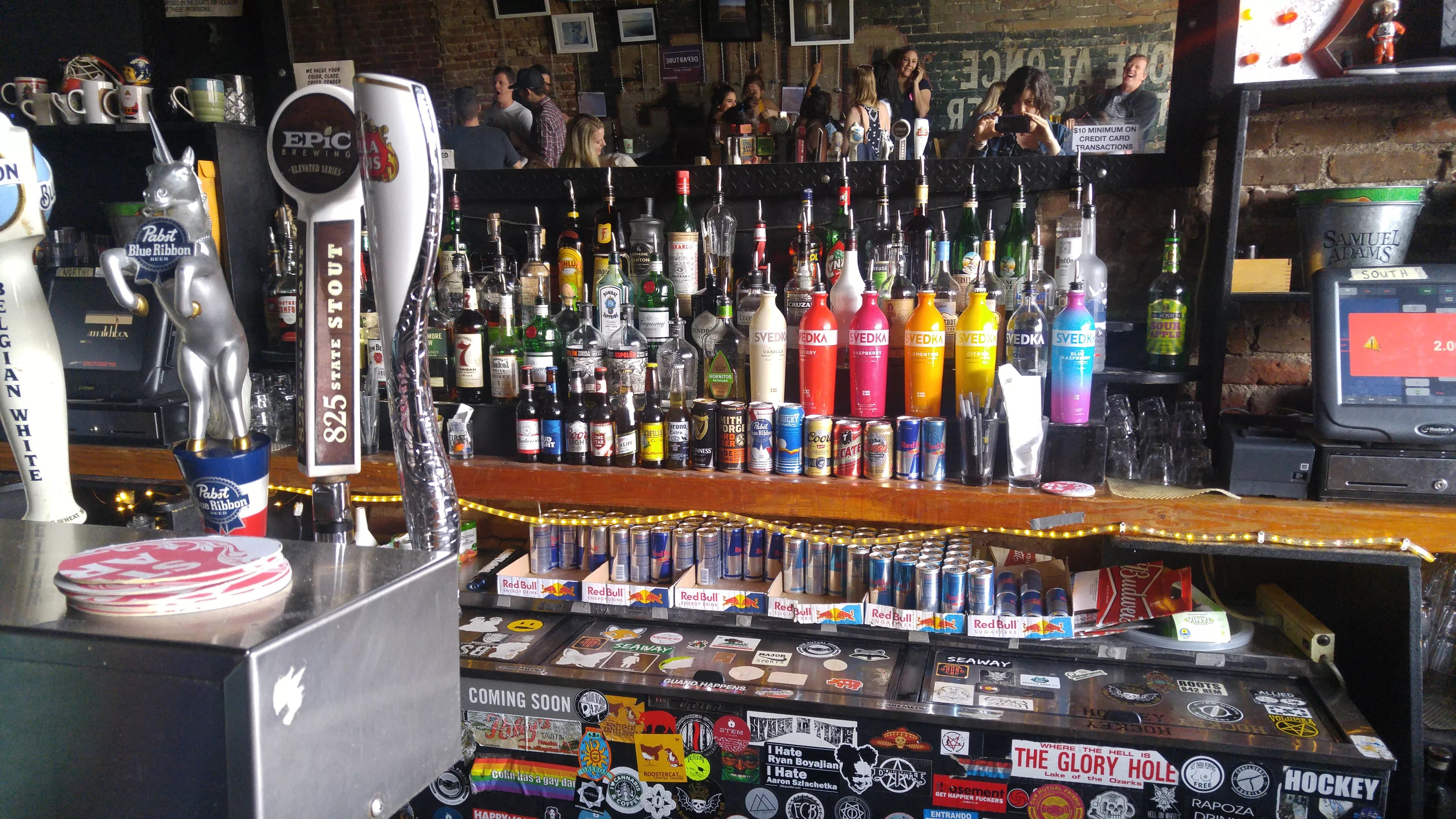 We got some cheap mixed drinks and beers and headed out to the patio, which was a bit less crowded, except for a group of man-bun wearers and blond girls with expensive sunglasses who kept trying to climb back and forth into the alley behind the bar, which involved squeezing between the top of the fence and a strip of barbed wire. Somehow none of them died, which was good, but my friends and I had a fine time laughing at them along with probably the second-oldest people in the bar, who were smoking at the table next to us on the patio.