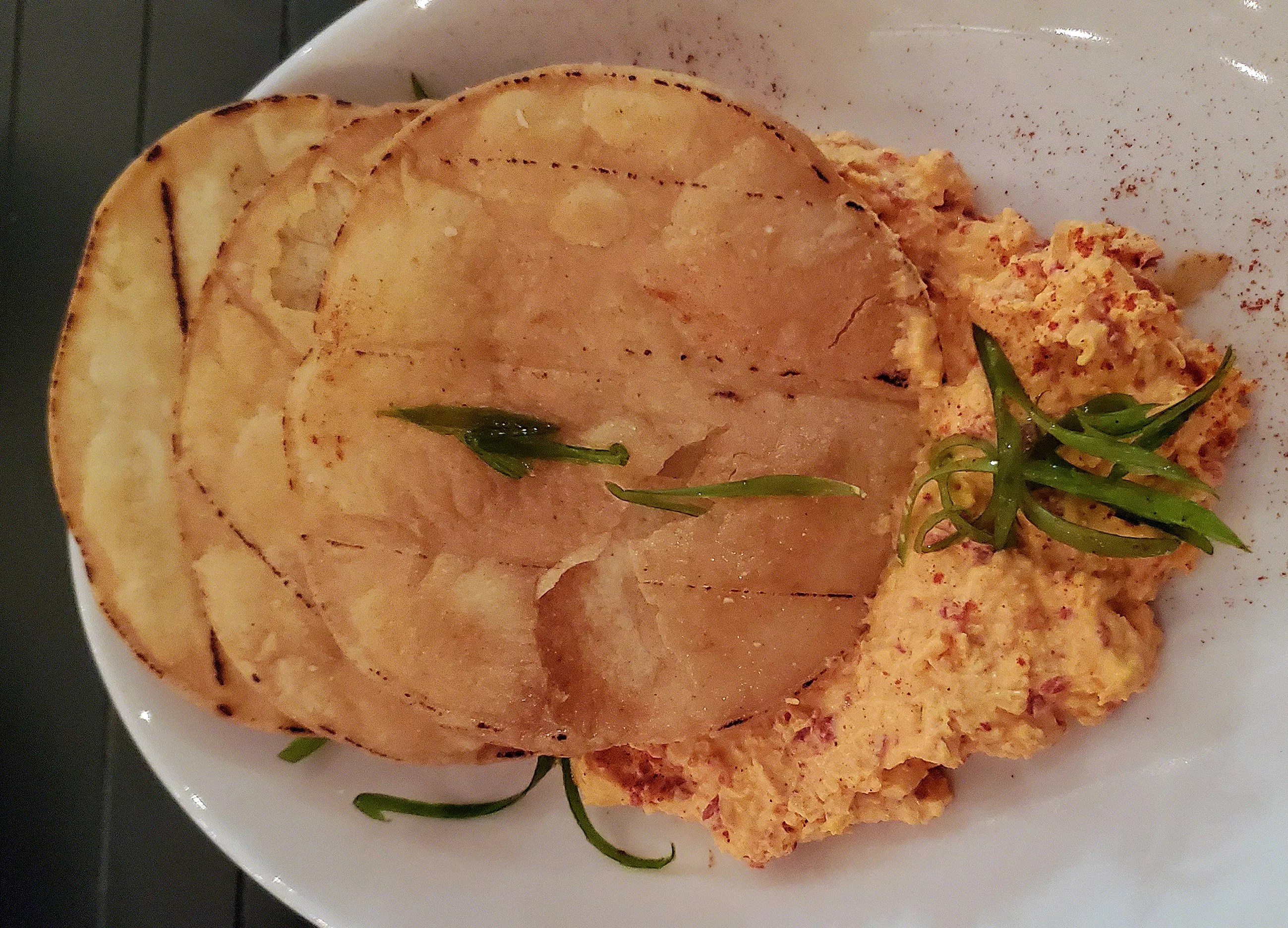 A very large plate of pimento cheese.