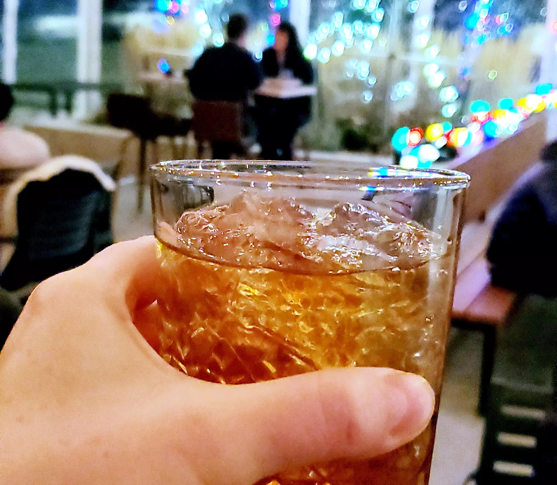 Sipping an Old Fashioned in the festive tent.