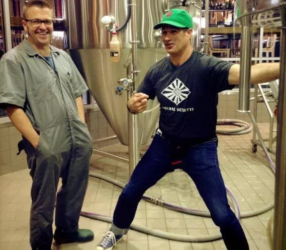 Bryan Selders (left) and Dogfish Head’s Sam Calagione collaborated on a beer in Colorado last year.