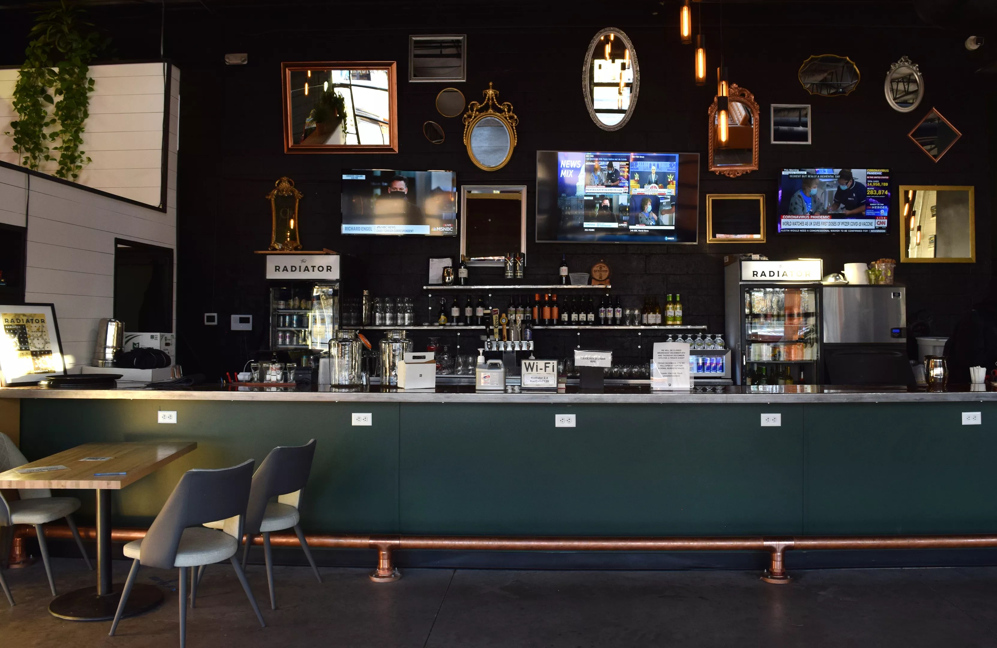 The Radiator offers beverages appropriate fo any time of day. Customers can start with coffee and then move on to a wide selection of alcoholic beverages.