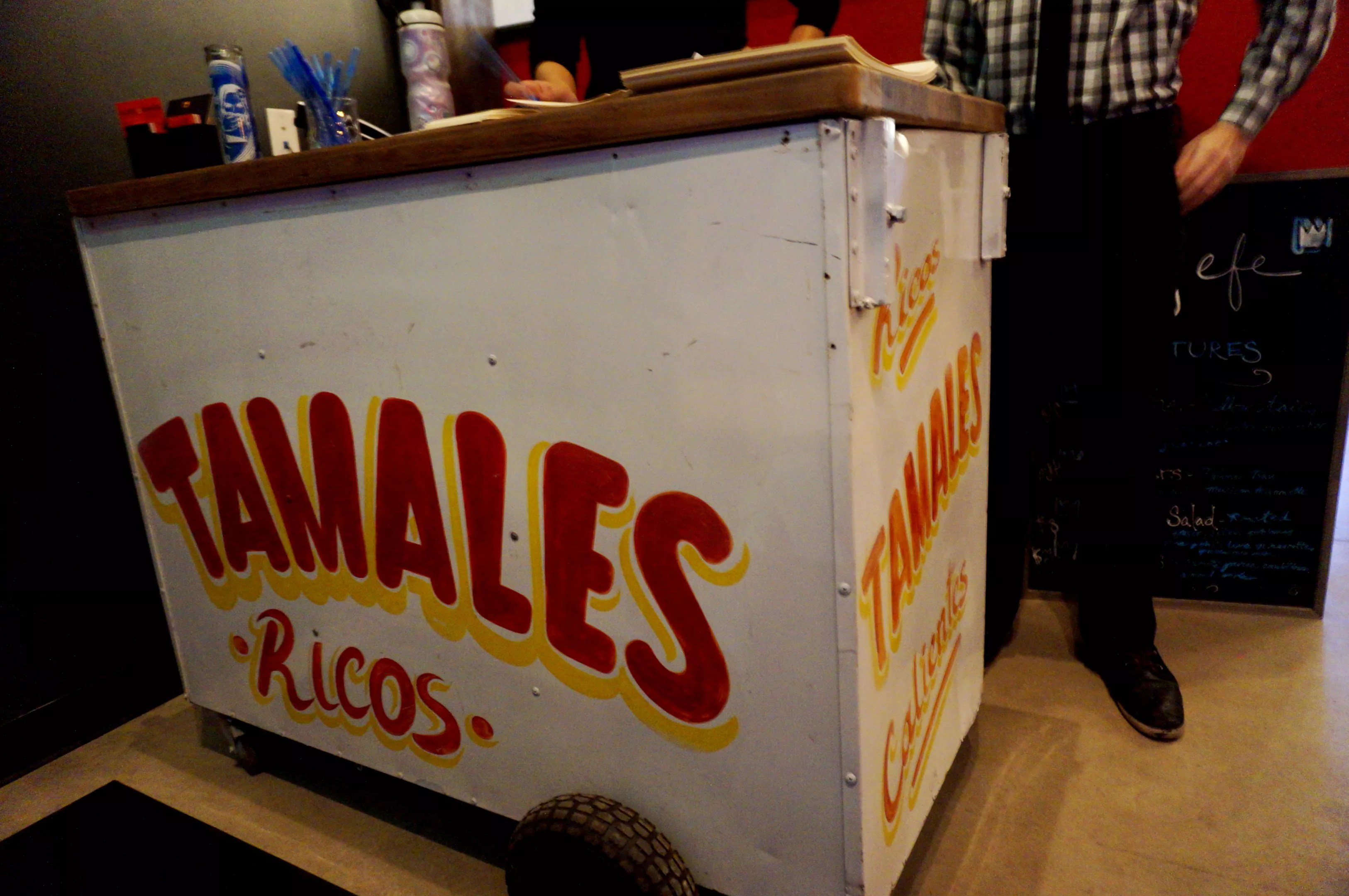 The host station is an actual tamale cart.