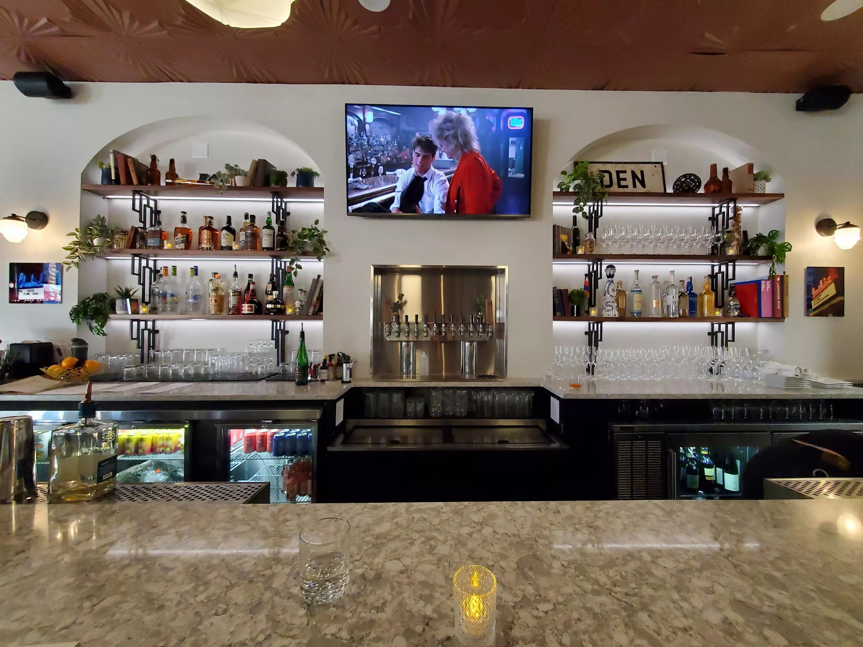 “The neighborhood has been so patiently waiting for something to be in there,” Carrie notes. Over a year ago, the Wigglesworths began negotiating the lease and working with a design team on the project. Custom furniture was created by Fin Art Co, a local company that also worked on the revamped Casa Bonita.
